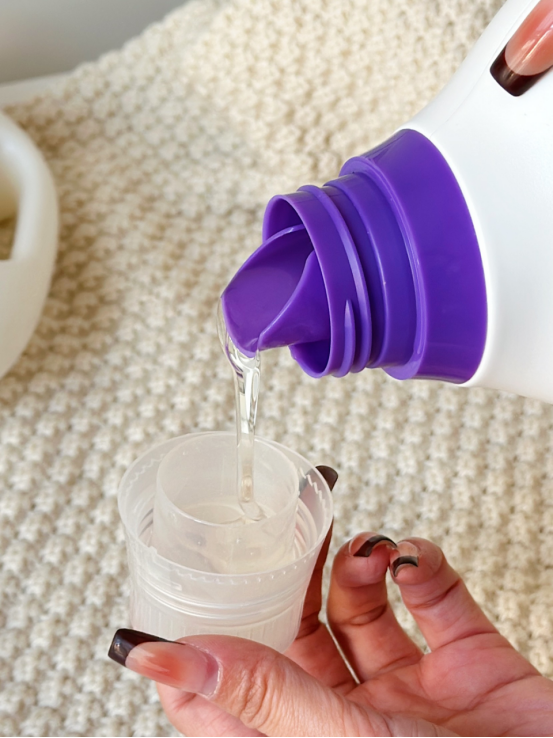 它的质地是那种清清爽爽的透明感, 倒进洗衣机里几秒就溶解了, 完全不用担心会有残留结块, 手洗的话搓开就是绵密又不厚重的泡沫, 冲两遍就干净,一点不费水, 而且洗完手也不会干巴巴的, 椰子油皂基配方确实温和👐