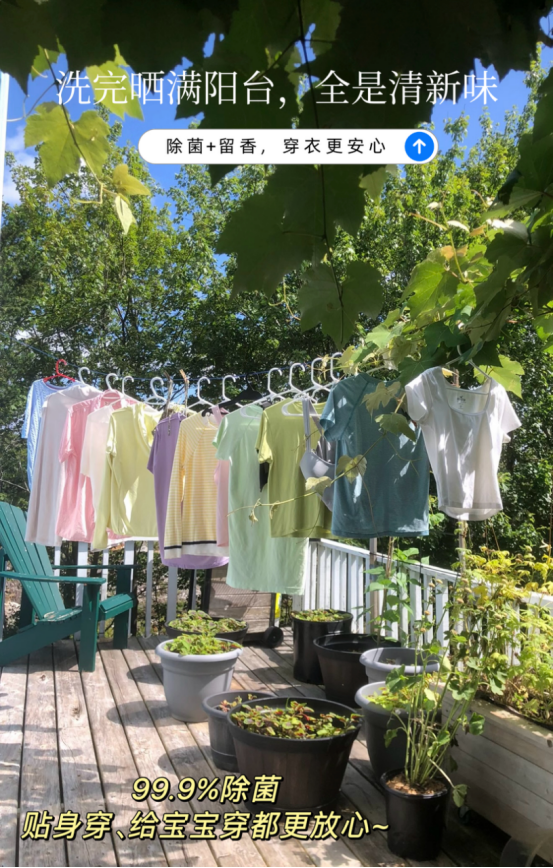 最惊喜的是它的香味!不是那种廉价刺鼻的化工香,是很清新的淡香,洗完的衣服晒在阳台 整个阳台都是淡淡的香气,穿在身上能留香好久,有时候下班回家凑近闻衣服,都觉得心情变舒服了😌