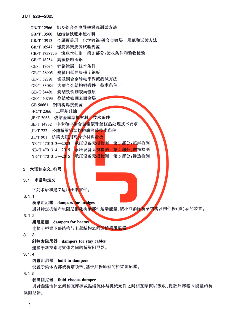 书名:桥梁阻尼器通用技术条件(JT/T 926—2025)