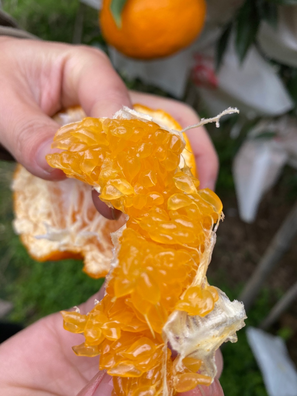 成熟后的春见耙耙柑,皮和肉会分离,当然捏起来软,剥起来方便啦~