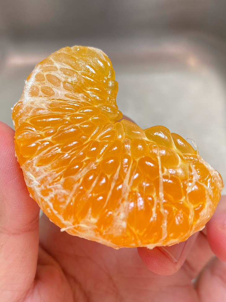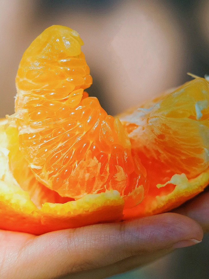 剥开果皮,赶快的送一瓣入口,牙齿轻轻一嗑,包裹着果肉的囊壁就“噗”地破开,香甜清爽的果汁犹如“小炸弹”般在口腔里横冲直撞,好吃的直让人“哇哦!”