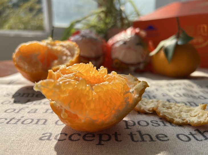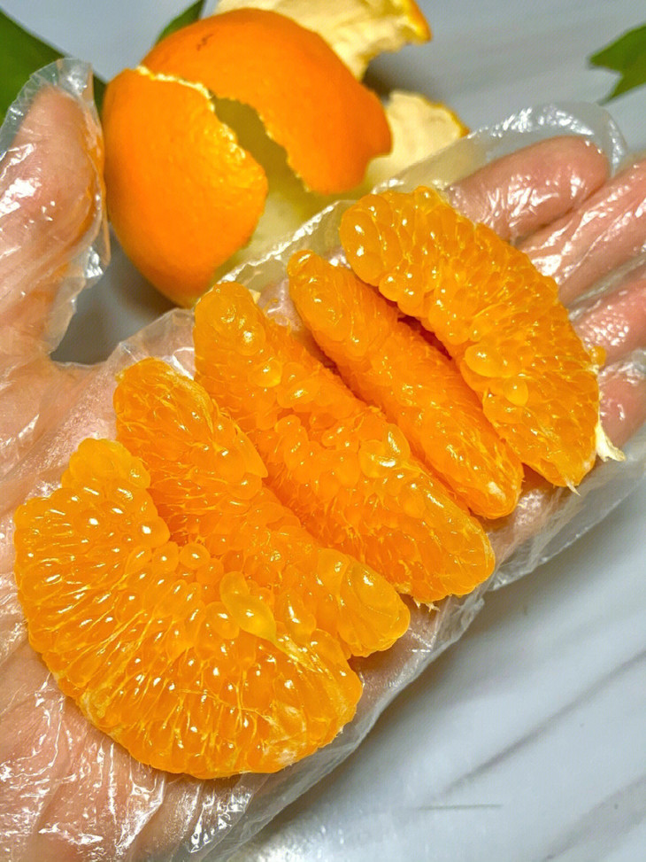 剥开的瞬间,阳光里都充满了耙耙柑的清香,饱满的橘瓣在舌尖绵软缠绕,化身为橘子汁。