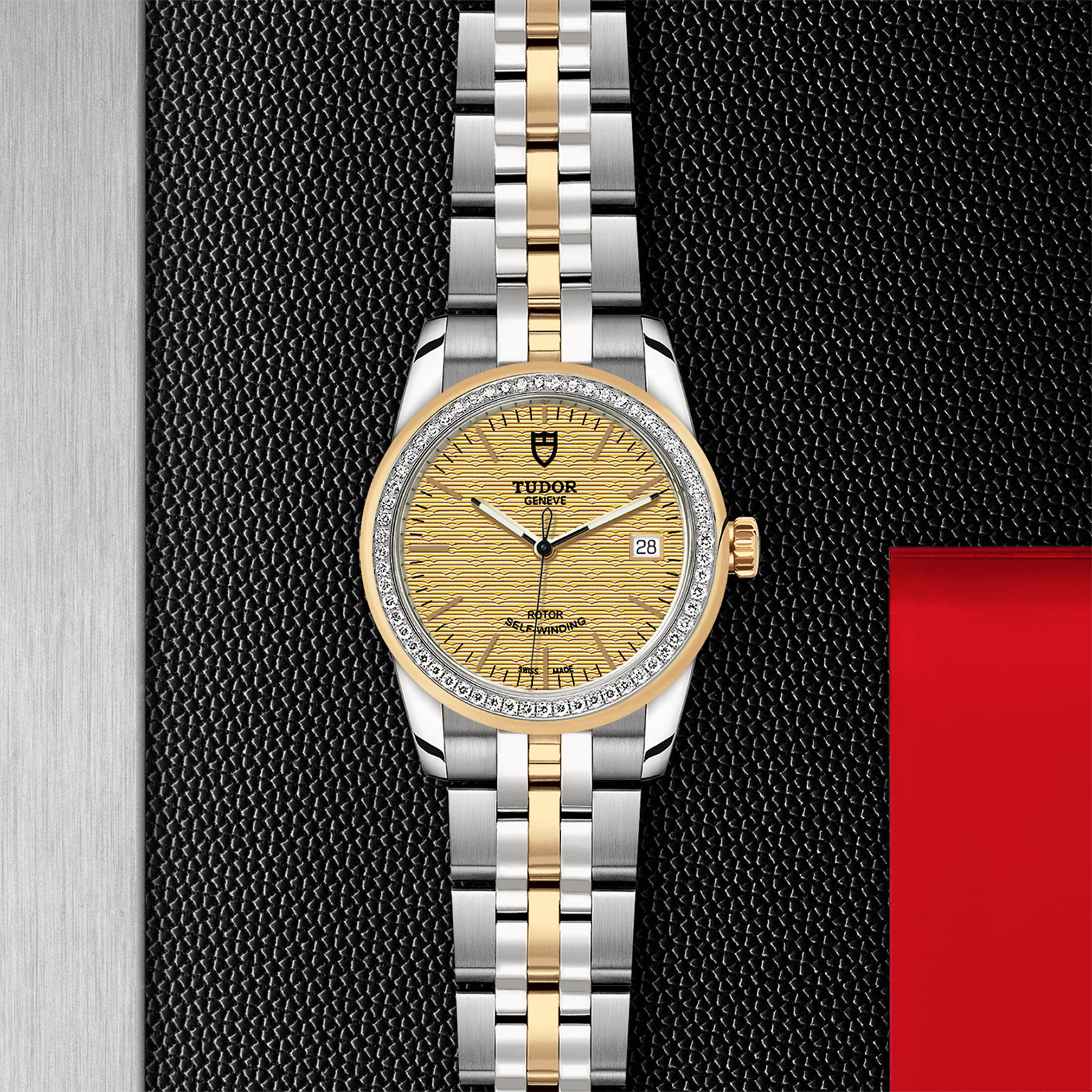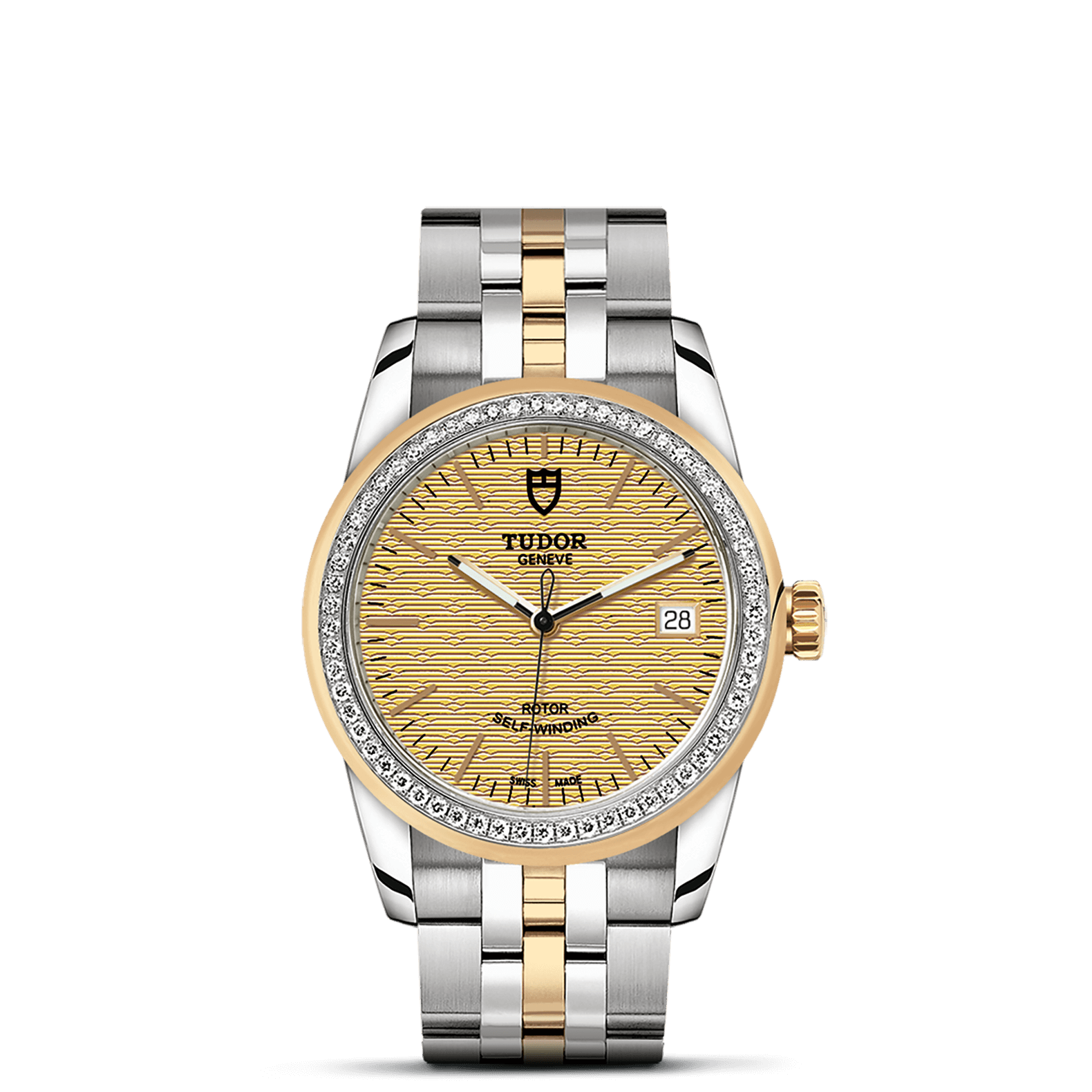 旋入式上链錶冠,饰以帝舵表标志;精钢覆有0.1毫米18K黄金薄层