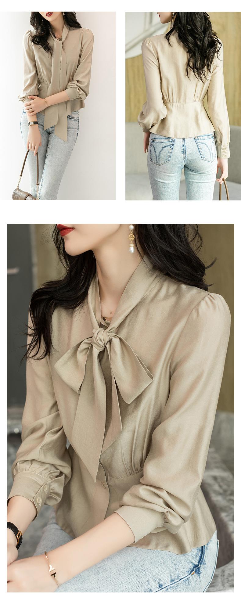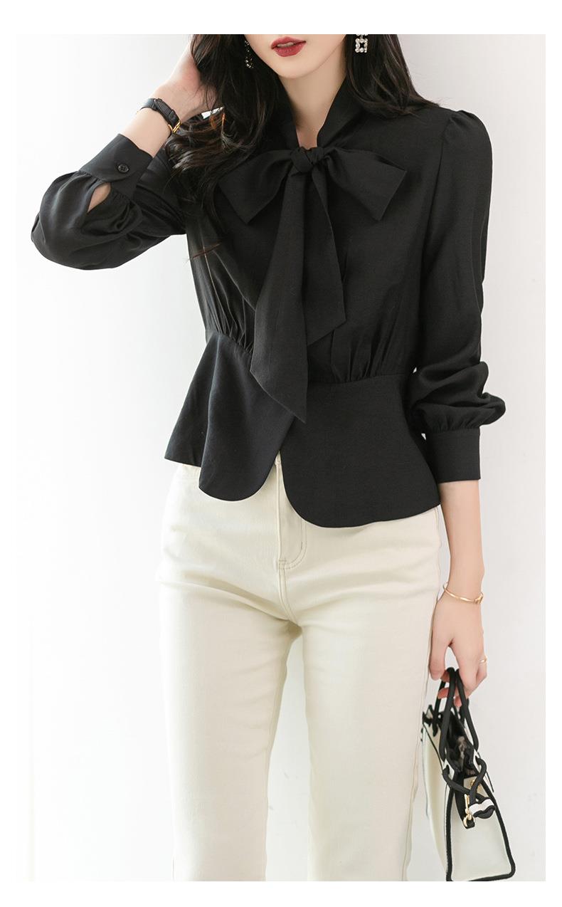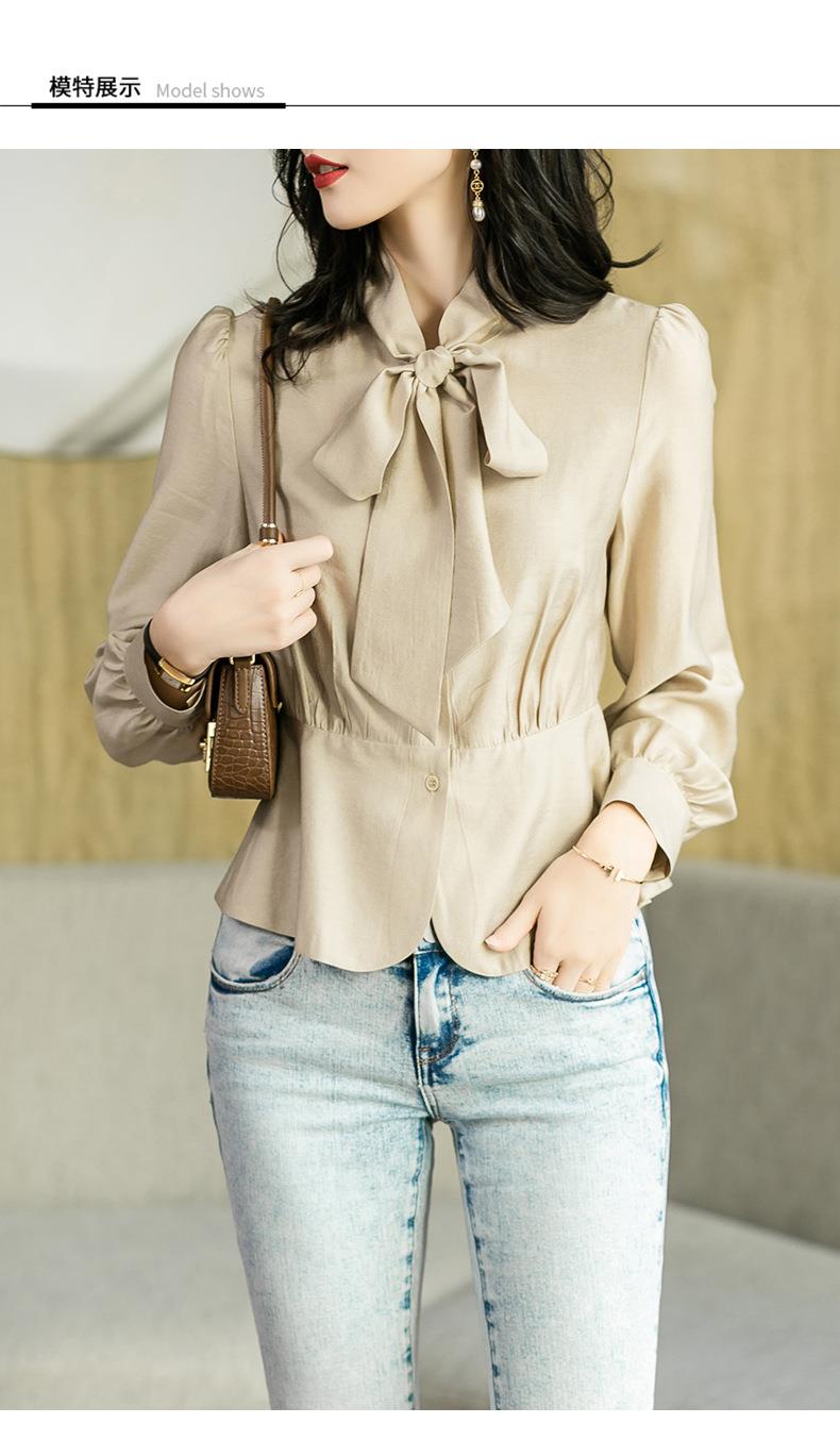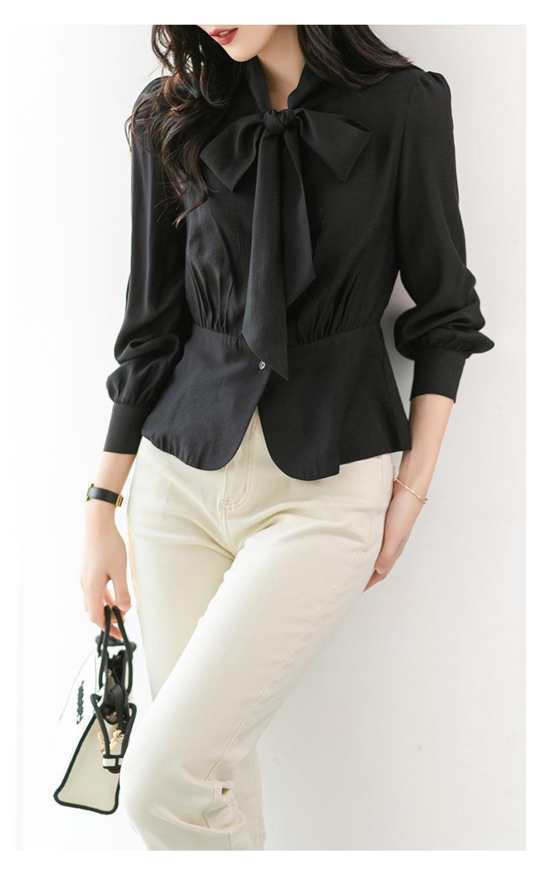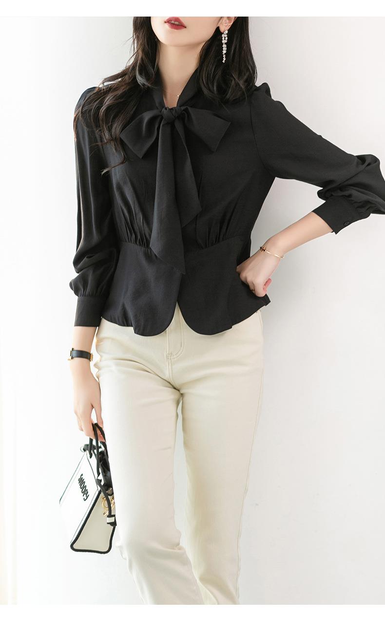2023秋装新款衬衫女长袖韩版系带洋气大码女士衬衣2066