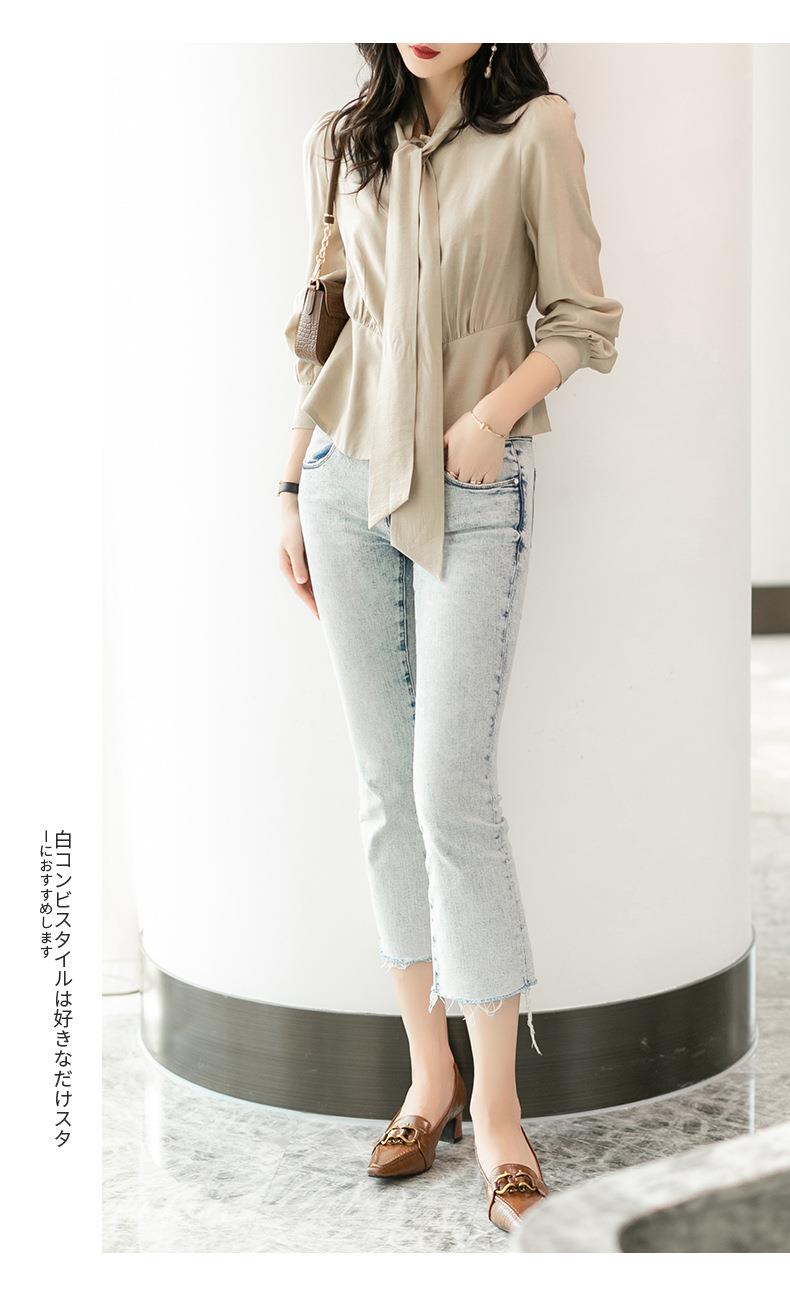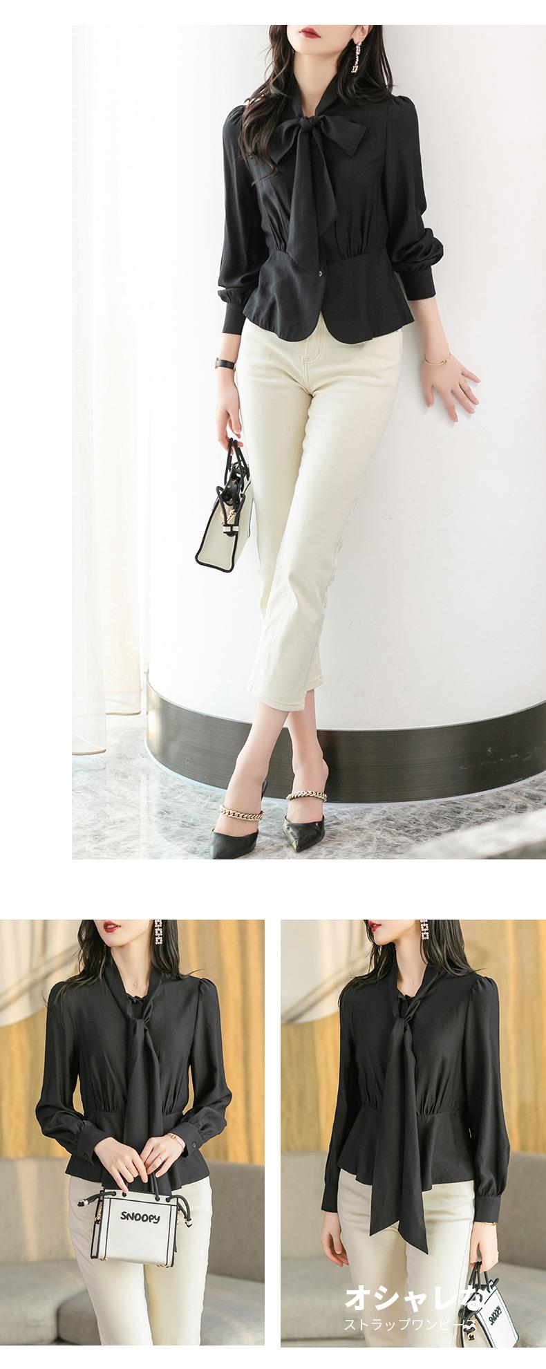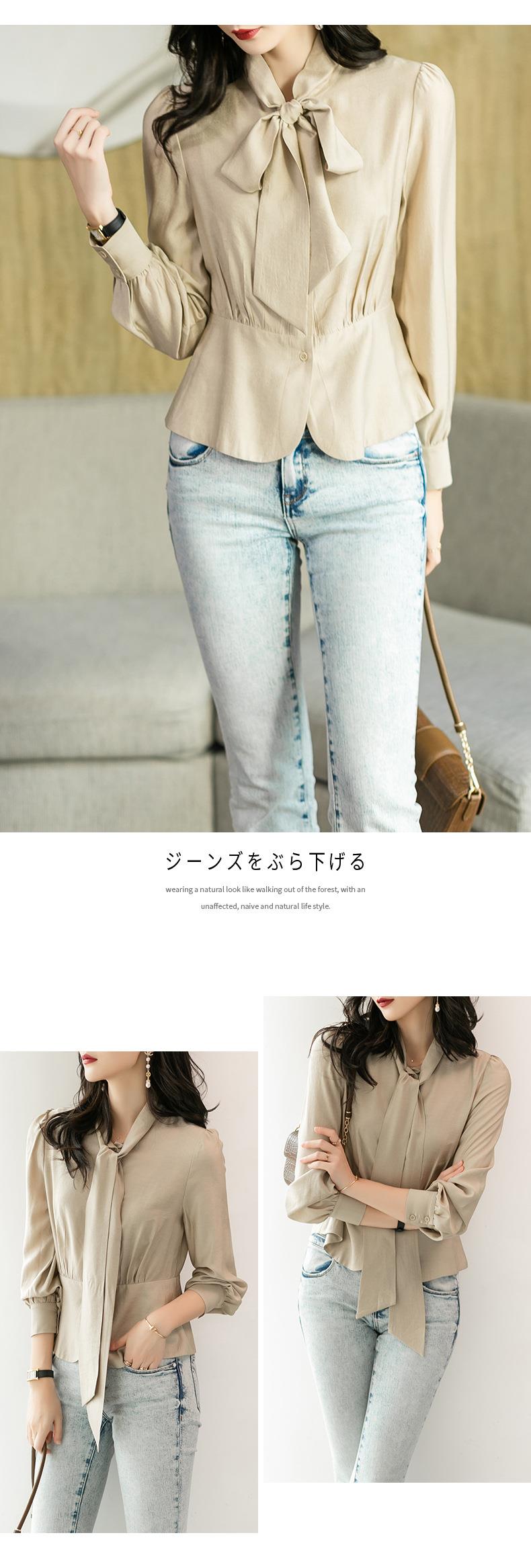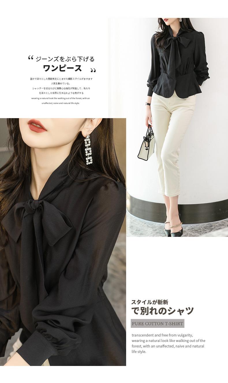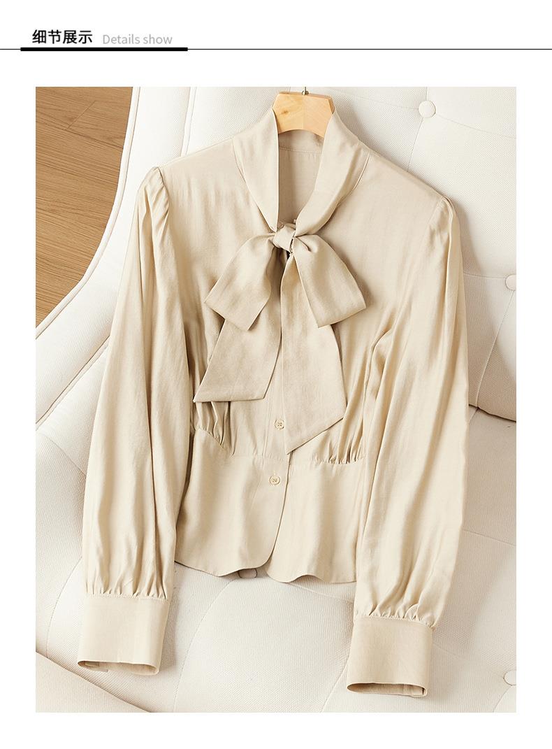 2023秋装新款衬衫女长袖韩版系带洋气大码女士衬衣2066