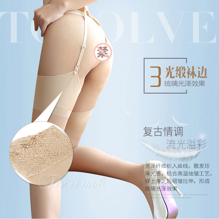 霏慕 15D接拼渐变透明长筒袜日系过膝丝袜女士吊袜带套装 性感透视情趣内衣玩性7231