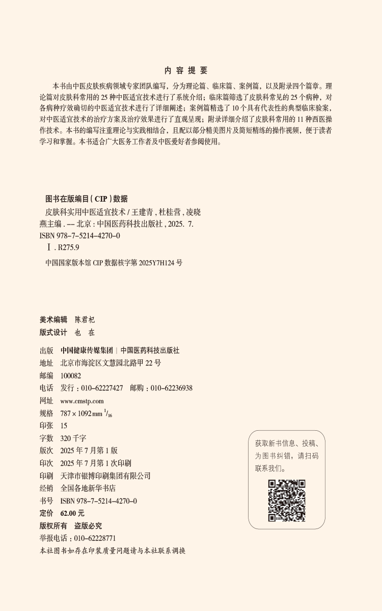 皮肤科实用中医适宜技术 王建青 杜桂营 凌晓燕 本书适合广大医务工作者及中医爱好者参阅使用 9787521442700中国医药科技出版社