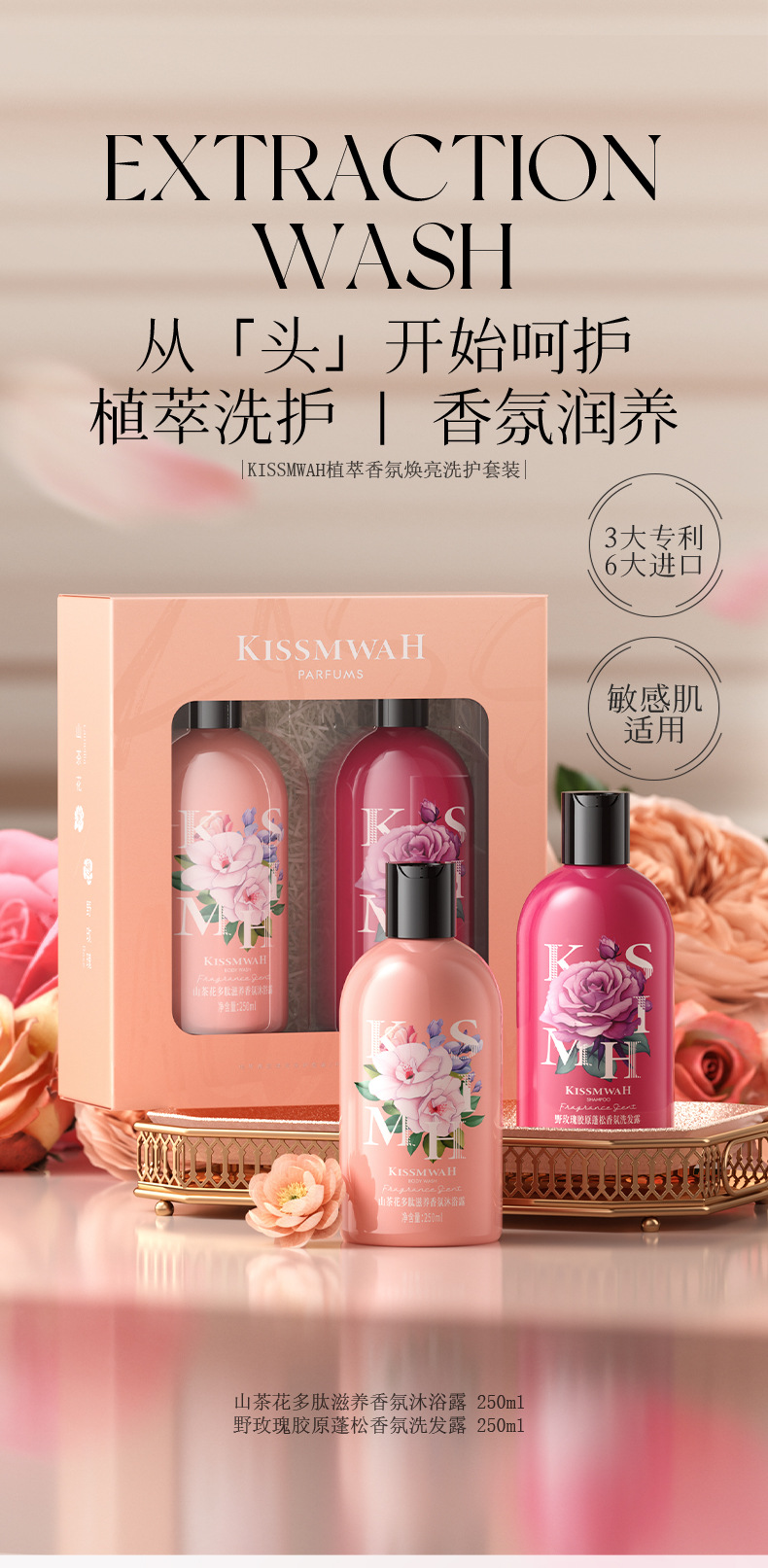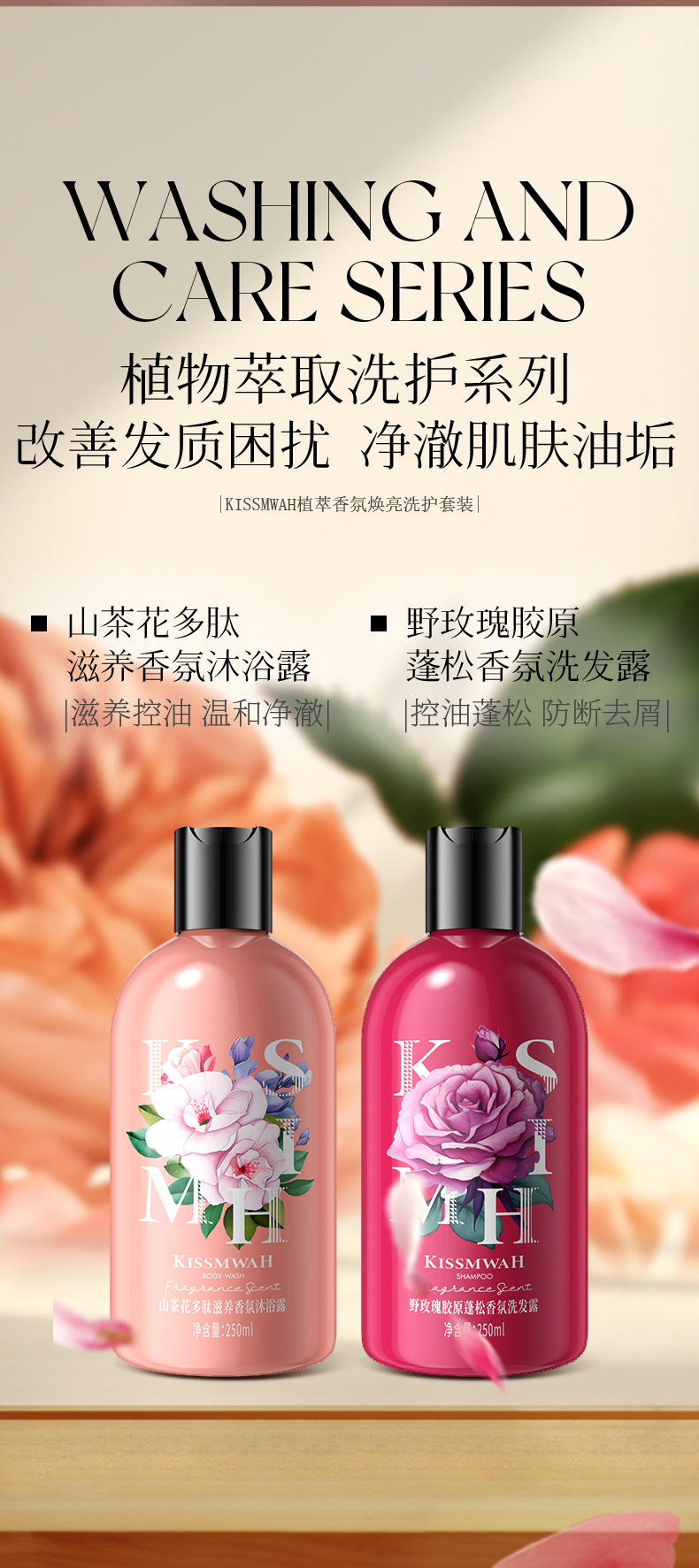 【泡沫绵密!温和养发】KISSMWAH香氛洗护套盒 植萃留香控油清爽洗发护发两件套家用洗护。xb