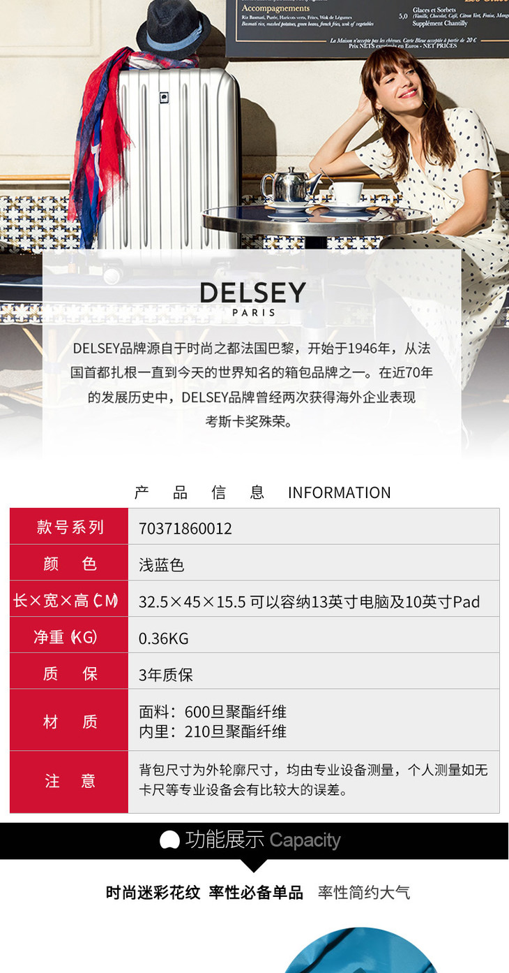 DELSEY法国大使 时尚迷彩双肩包休闲包男女 蓝色70371860012