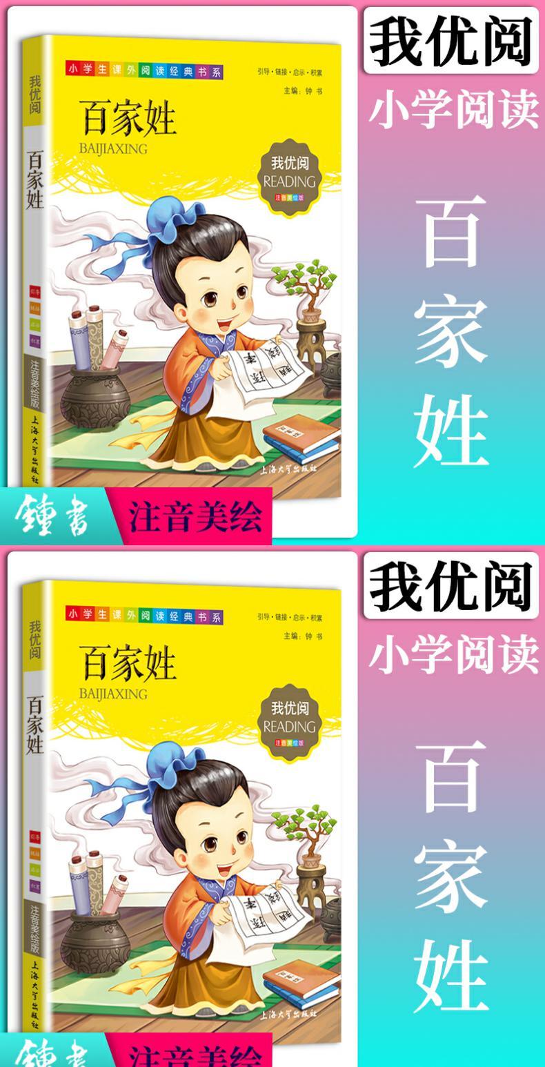 1-3年级适用 注音美绘版-百家姓 钟书正版少儿读物我优阅系列拼音彩图版百家姓 儿童文学课外读物小学生作文阅读写作能力