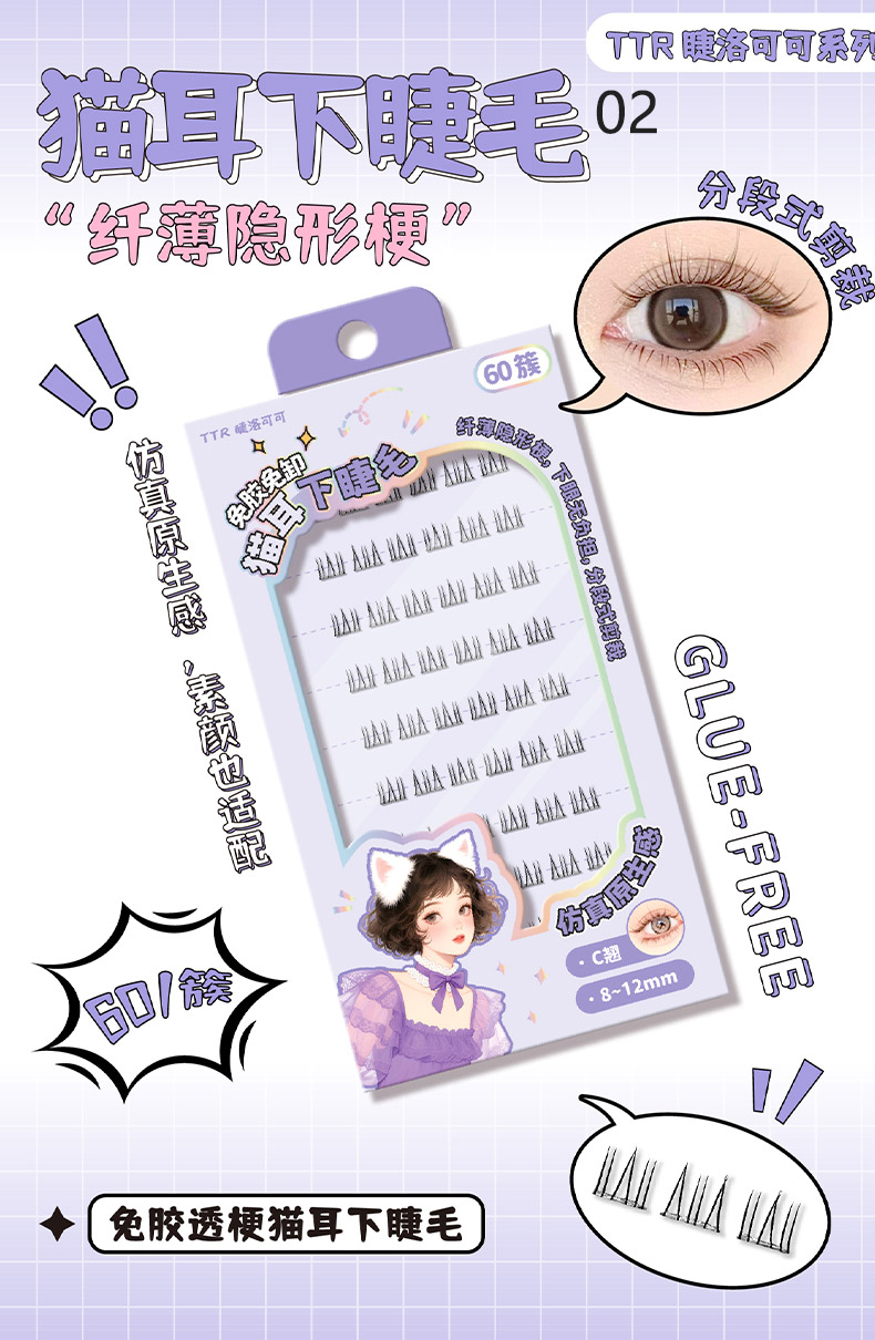 卡盟免胶仿真自然透梗分段式下睫毛60簇-纪念日百货门店同款167844264
