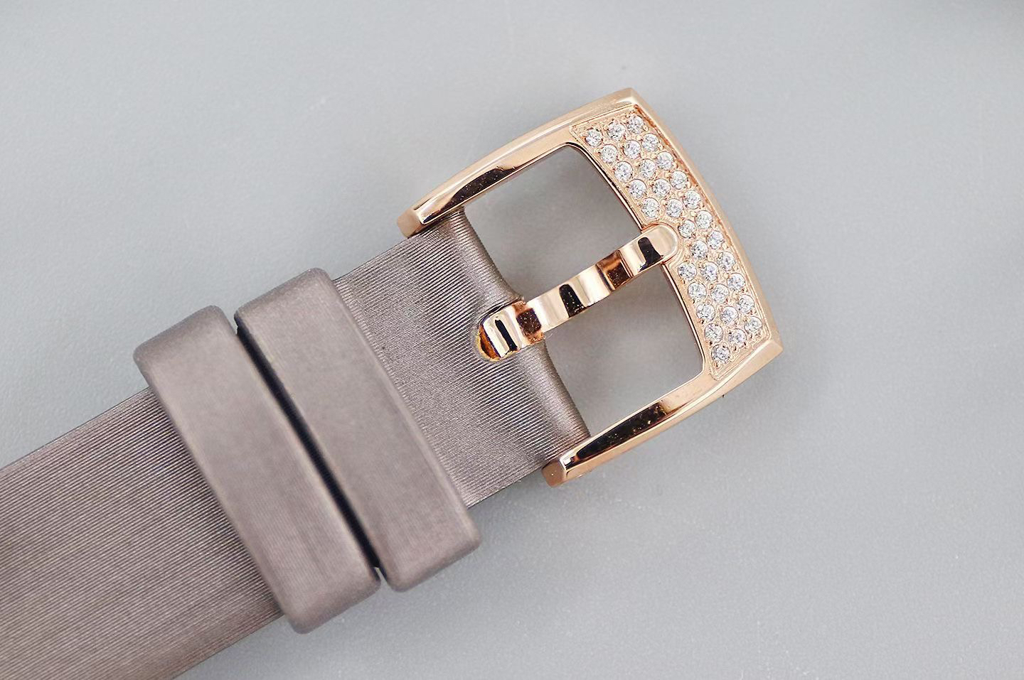 这款腕表采用零返修日本原装机芯1032,,电镀18K玫瑰金,表壳直径38毫米,表带为灰色磨砂帆布以呼应表盘色调。