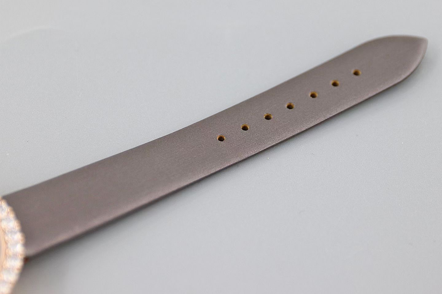 这款腕表采用零返修日本原装机芯1032,,电镀18K玫瑰金,表壳直径38毫米,表带为灰色磨砂帆布以呼应表盘色调。TF新萧邦震撼来袭(经典皮带限量版款式)