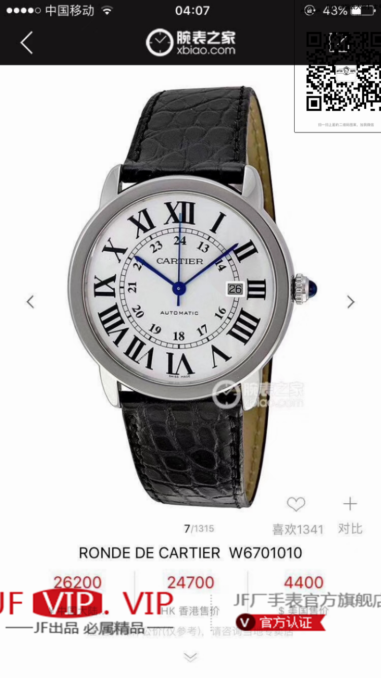 N卡地亚伦敦系列W6701010男士腕表,机芯型号:2892改卡地亚049自动机械机芯。
