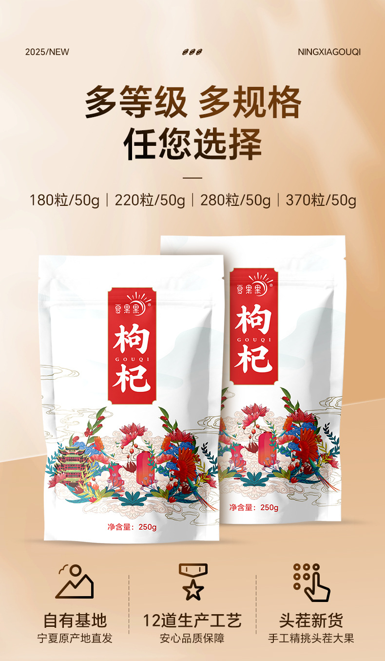 【粉丝专属❗️宁夏枸杞头茬枸杞子】新鲜采收,自然晾晒,颗粒饱满,营养丰富!新货中宁夏红枸杞颗粒饱满泡茶泡酒头茬子即食L