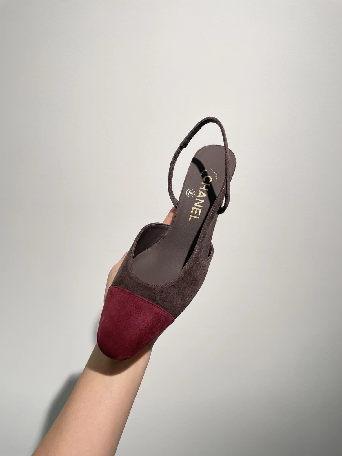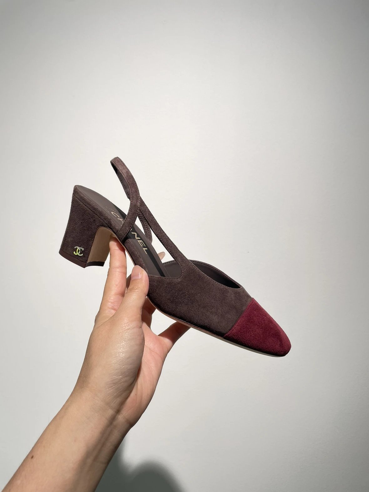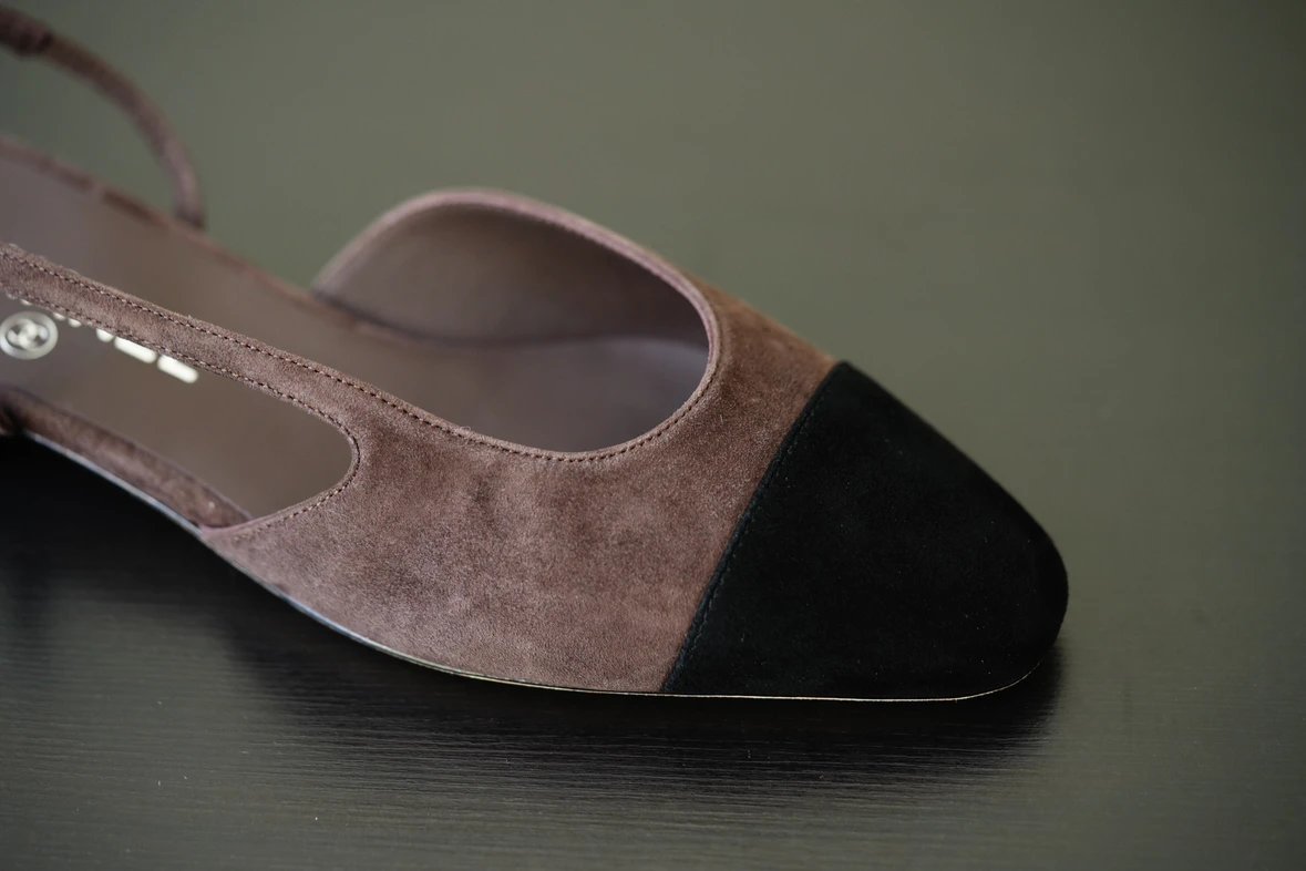 万年经典款 老渠道 麂皮Slingback粗跟凉鞋 双色单鞋 露跟凉鞋 中跟/平底