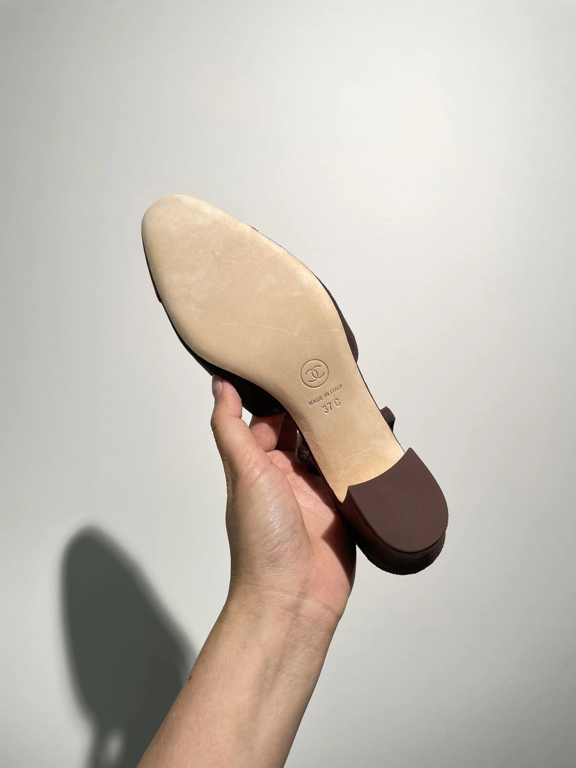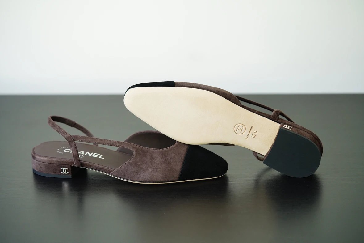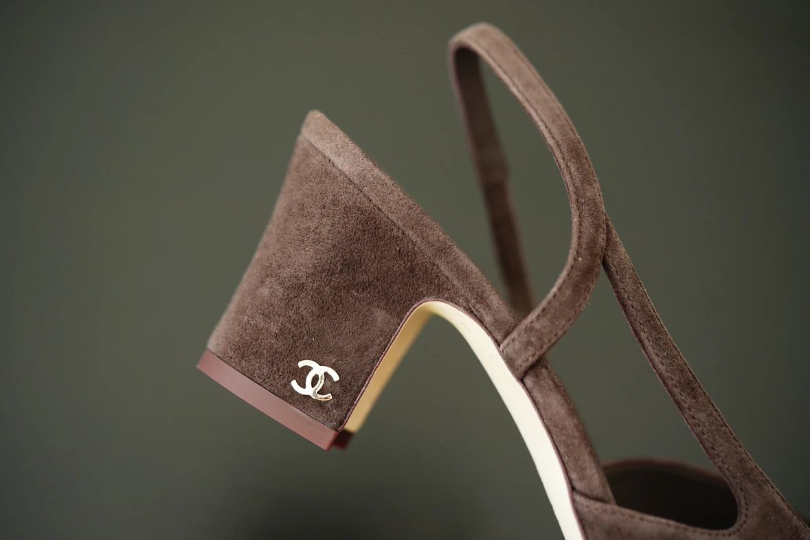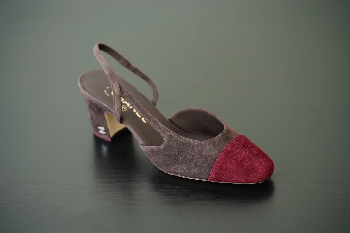 万年经典款 老渠道 麂皮Slingback粗跟凉鞋 双色单鞋 露跟凉鞋 中跟/平底