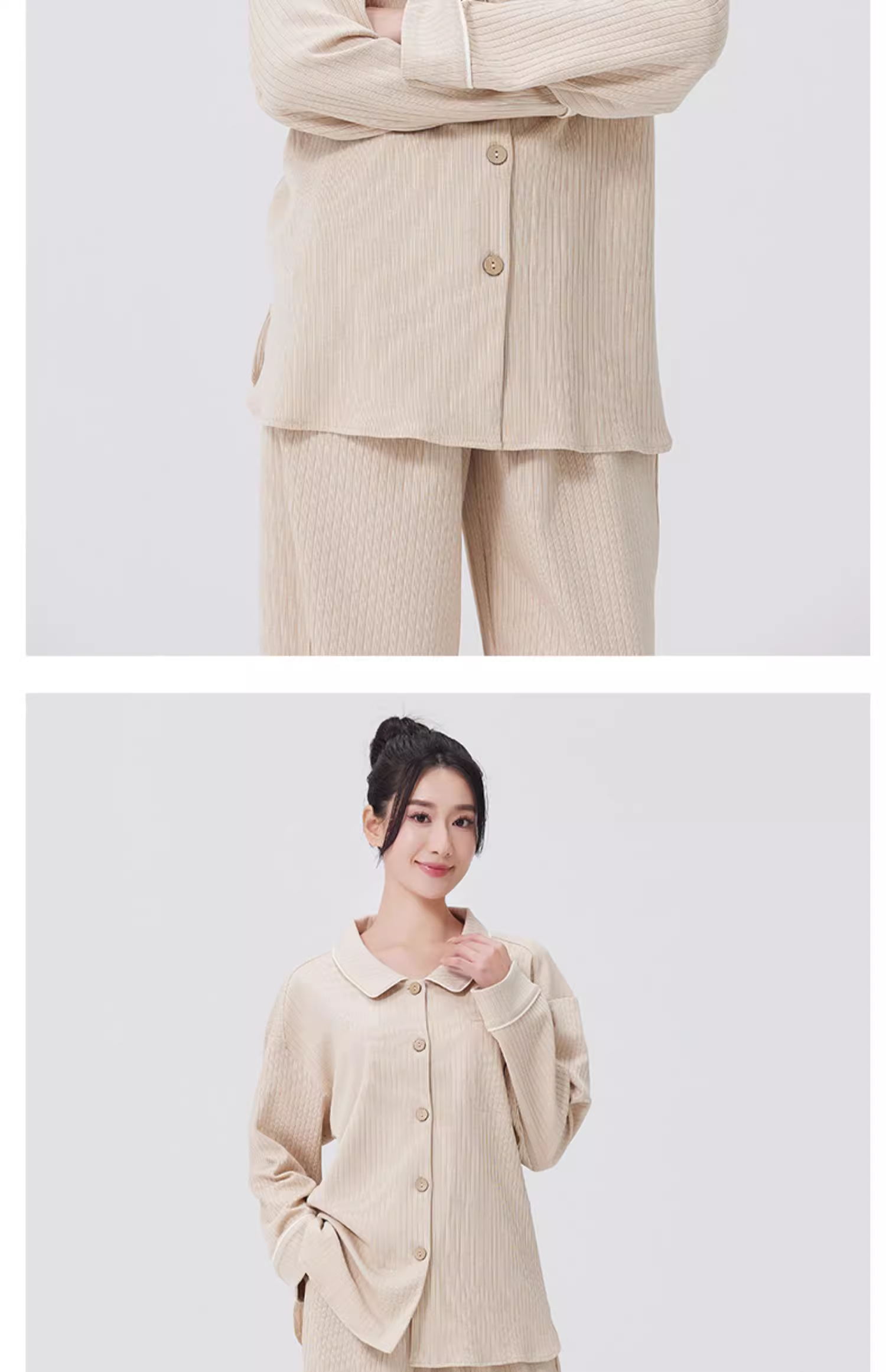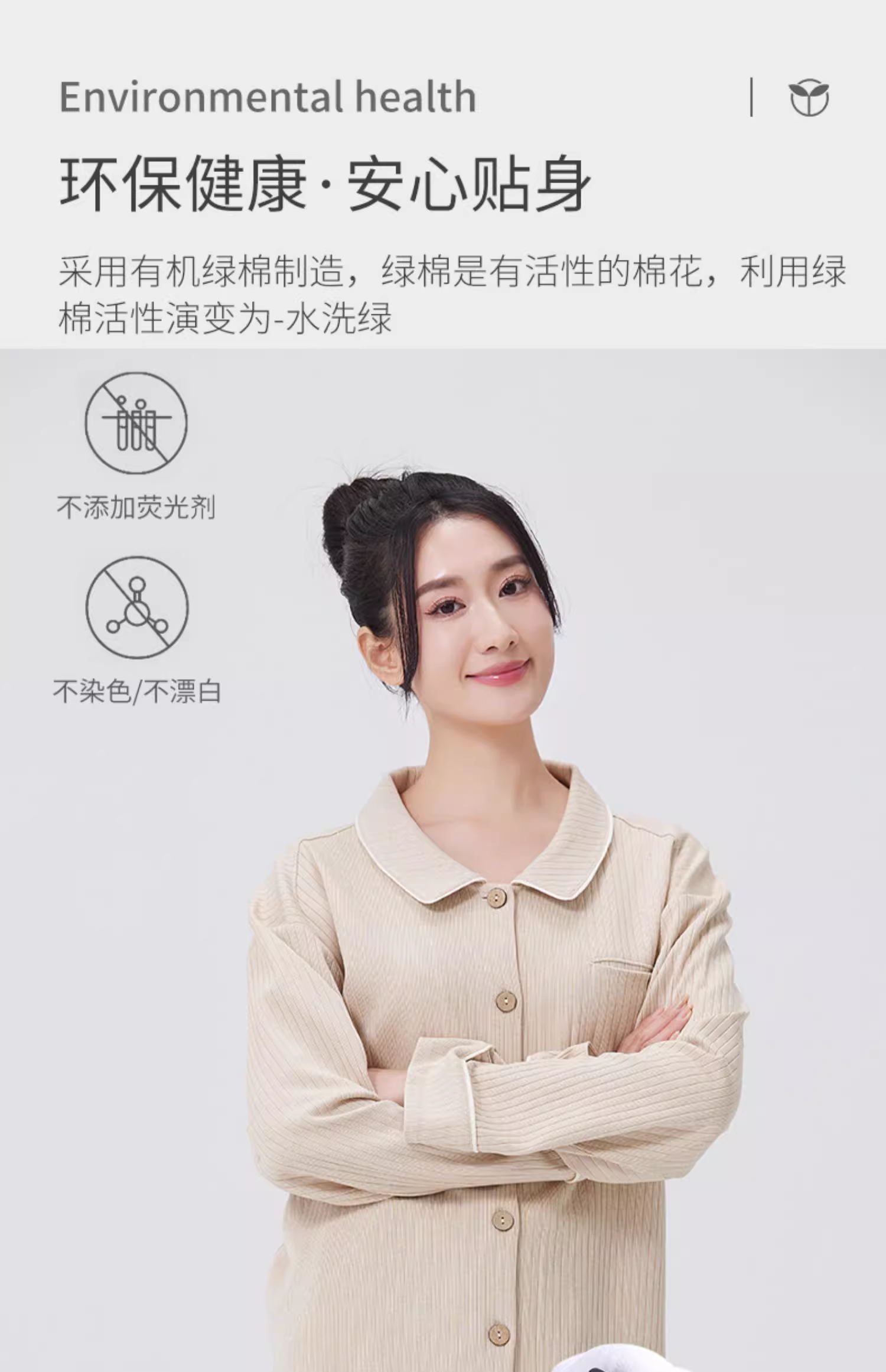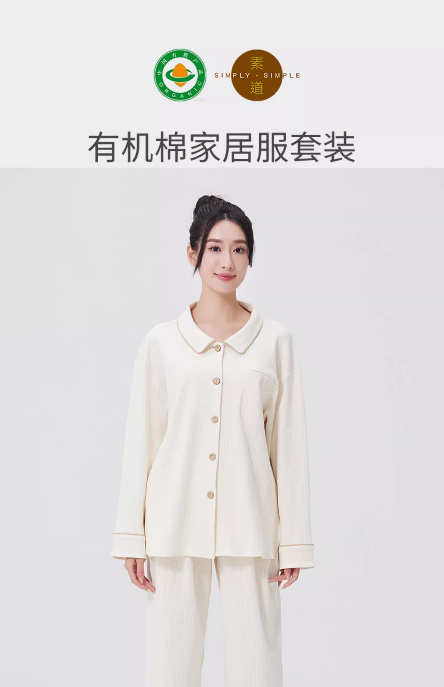 【女士长袖家居服/暖睡衣】100%棉素道有机彩棉-女士白色/棕色纯棉家居服套装(基地直发-申通包邮),来自敦煌,品牌:素道【合作生产,公平贸易】