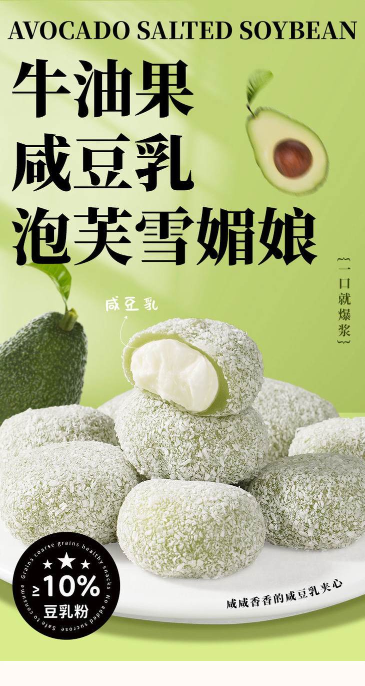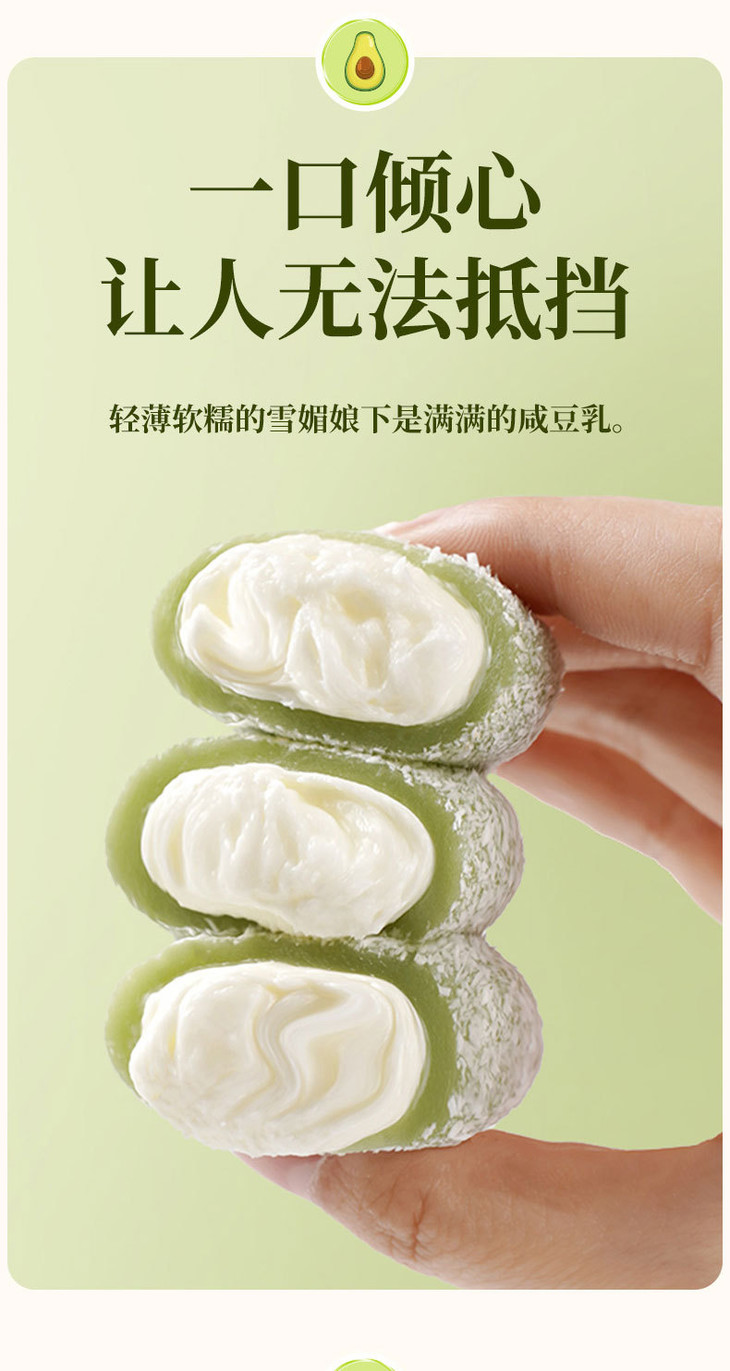 【有颜有料!牛油果咸豆乳泡芙】糯叽叽爆浆夹心麻薯雪媚娘独立包装休闲 零食,软糯香甜 一口爆浆,网红休闲解馋糕点零食点心Y