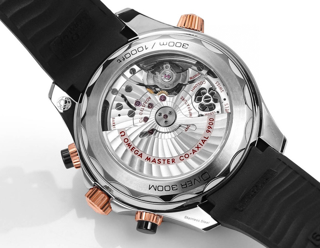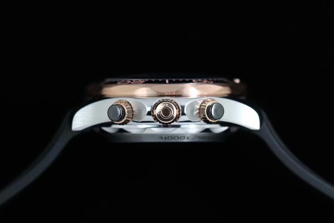 1: 搭载复刻9900/9901计时机芯(非9300换锤片)同正品黑色摆轮,天然进口橡胶表带,表带可与原版互换