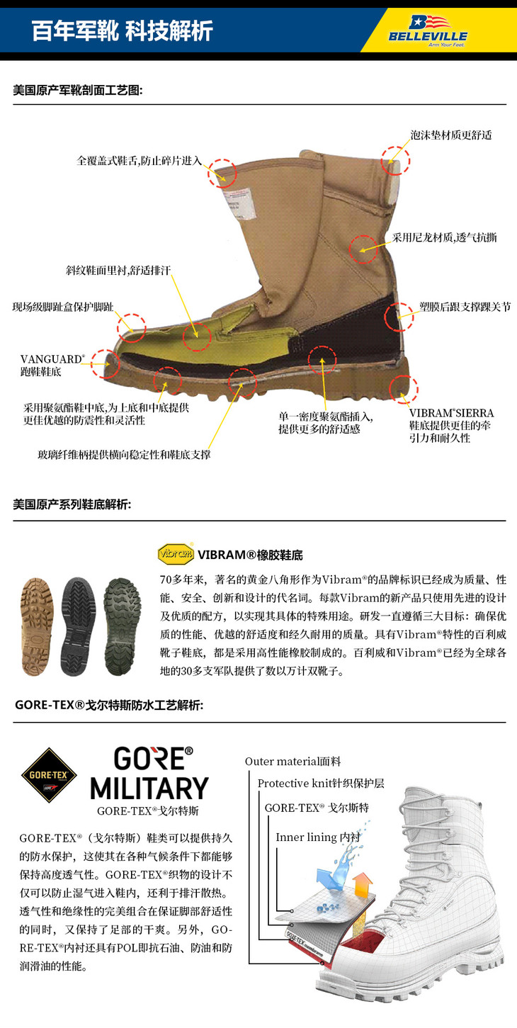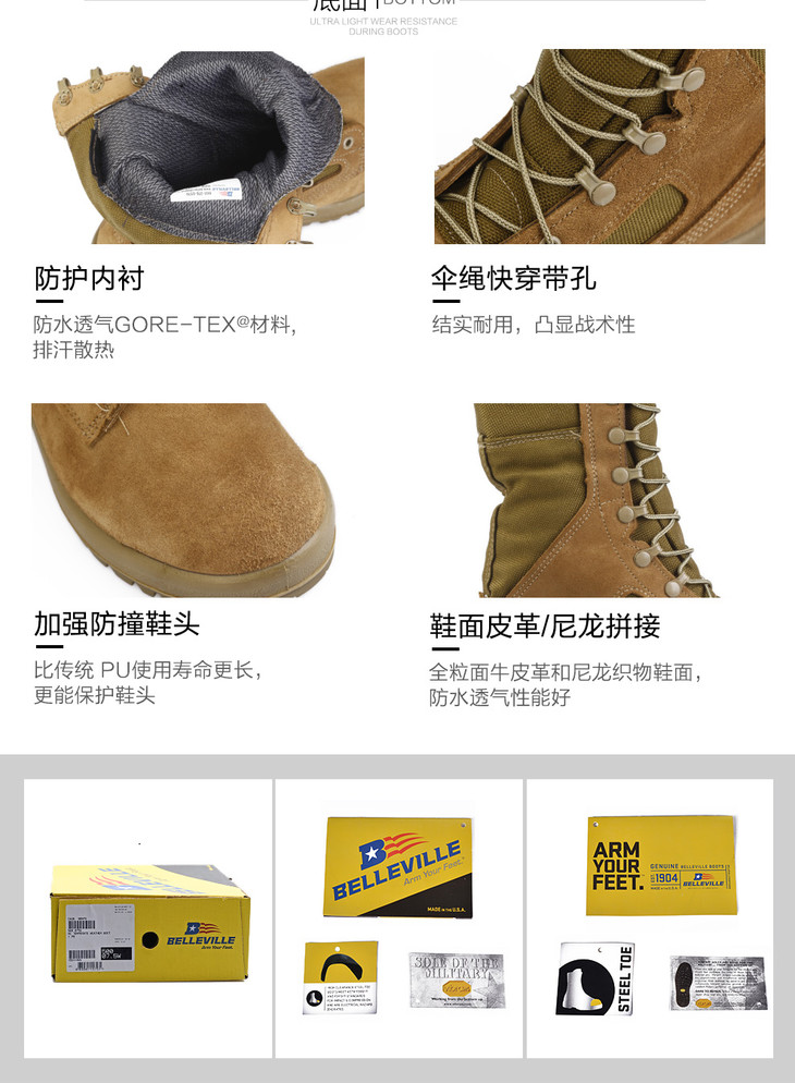 美国Belleville百利军靴男500户外GTX防水战术靴EGA沙漠靴作战靴