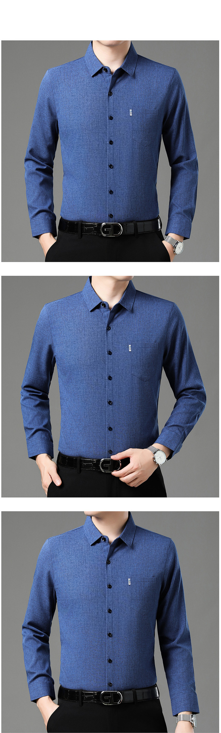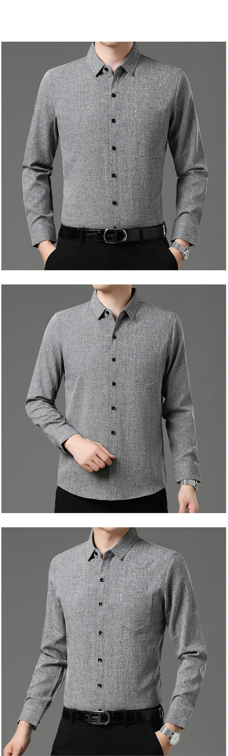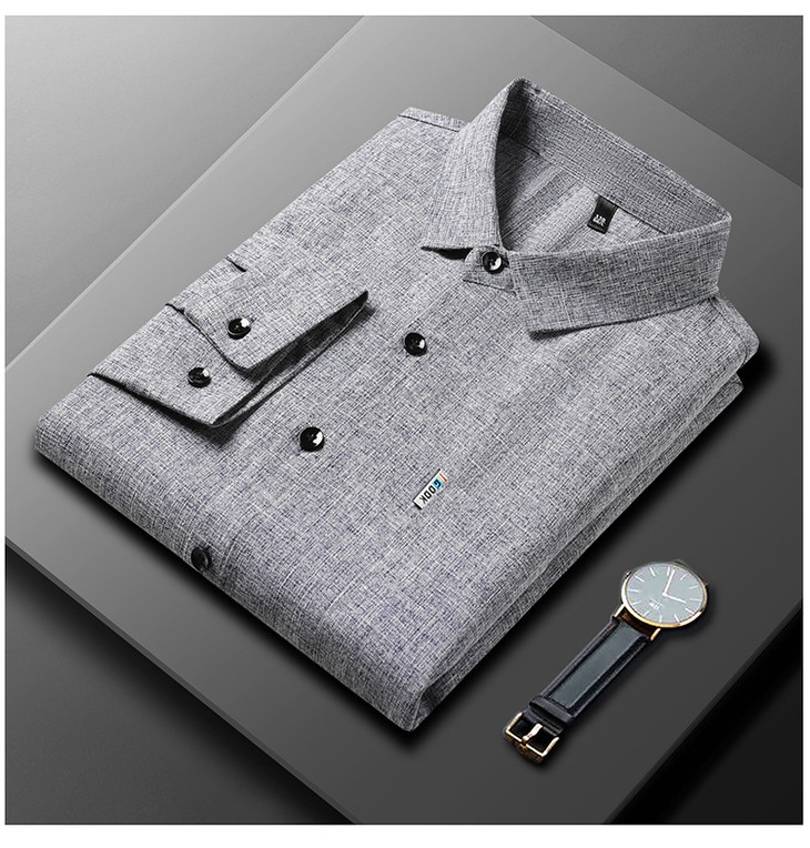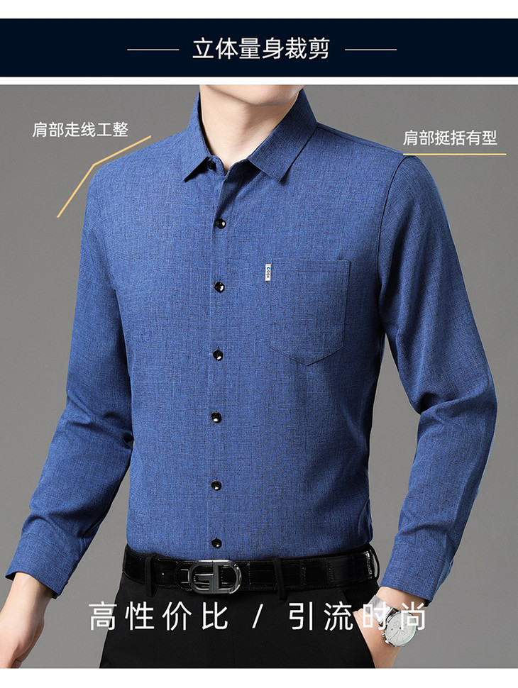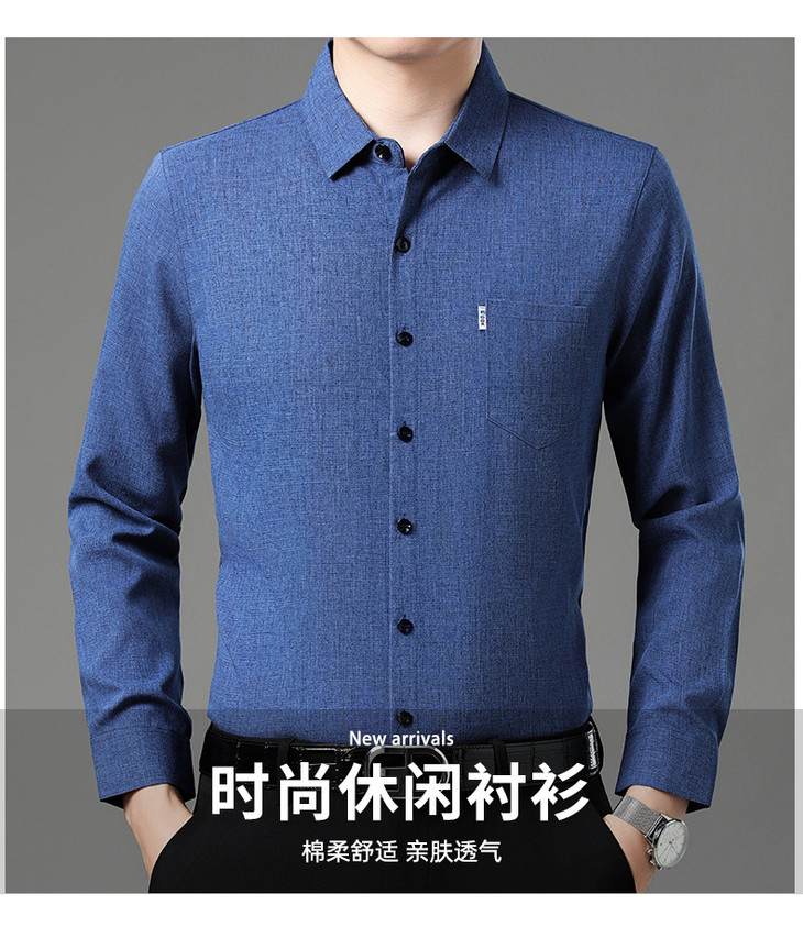 秋季长袖衬衣男士中年商务休闲真口袋棉麻爸爸男装衬衫