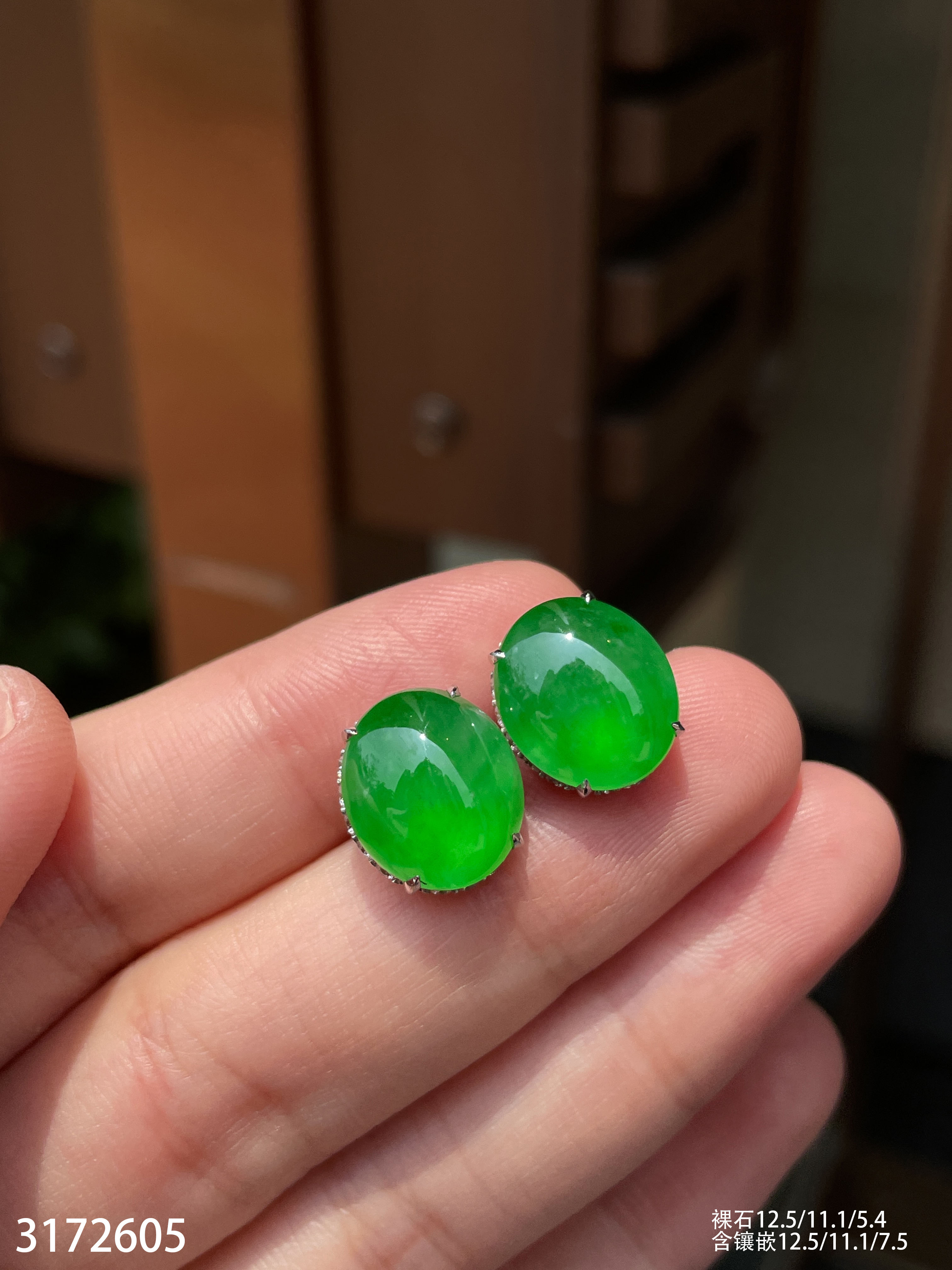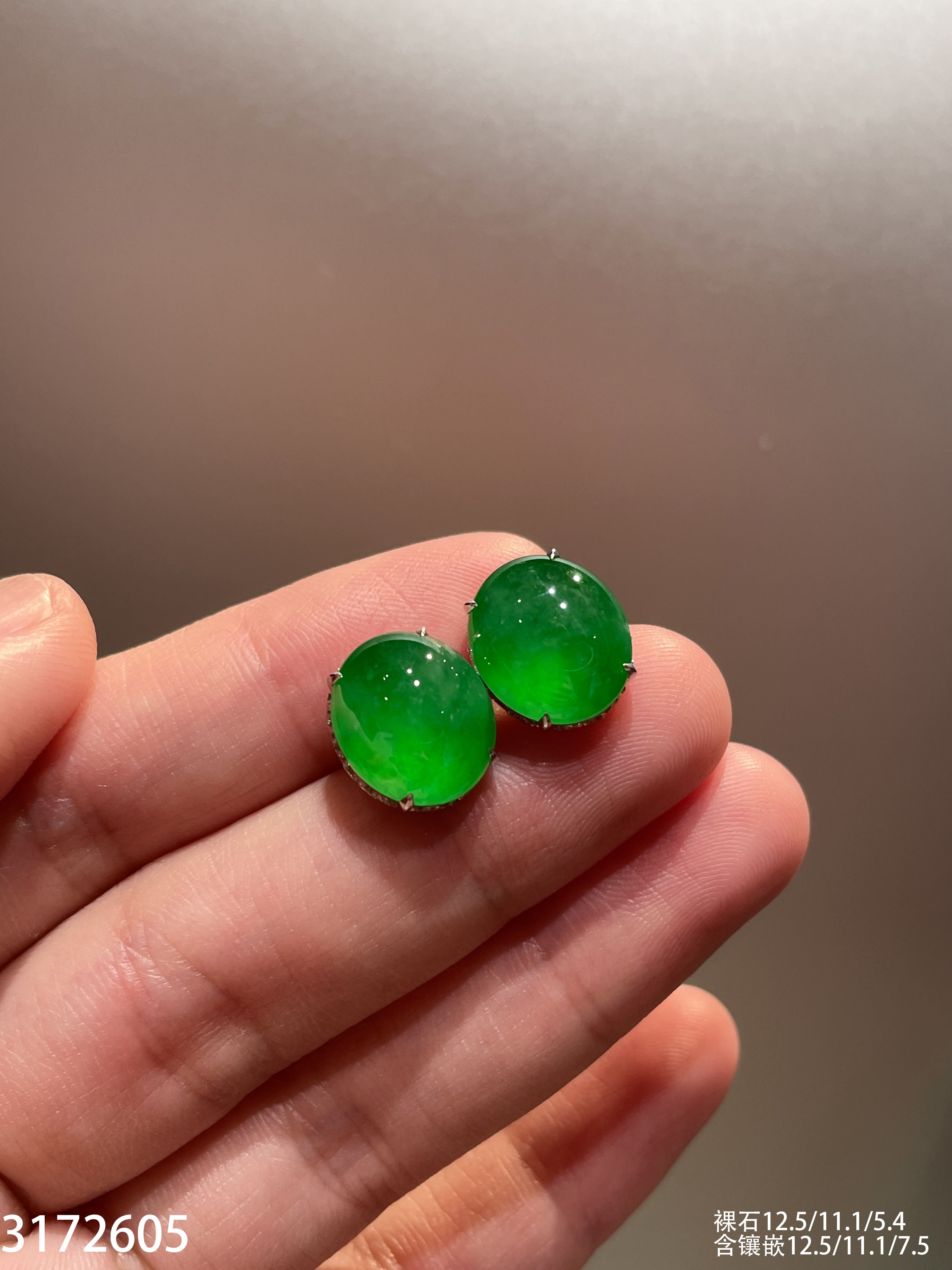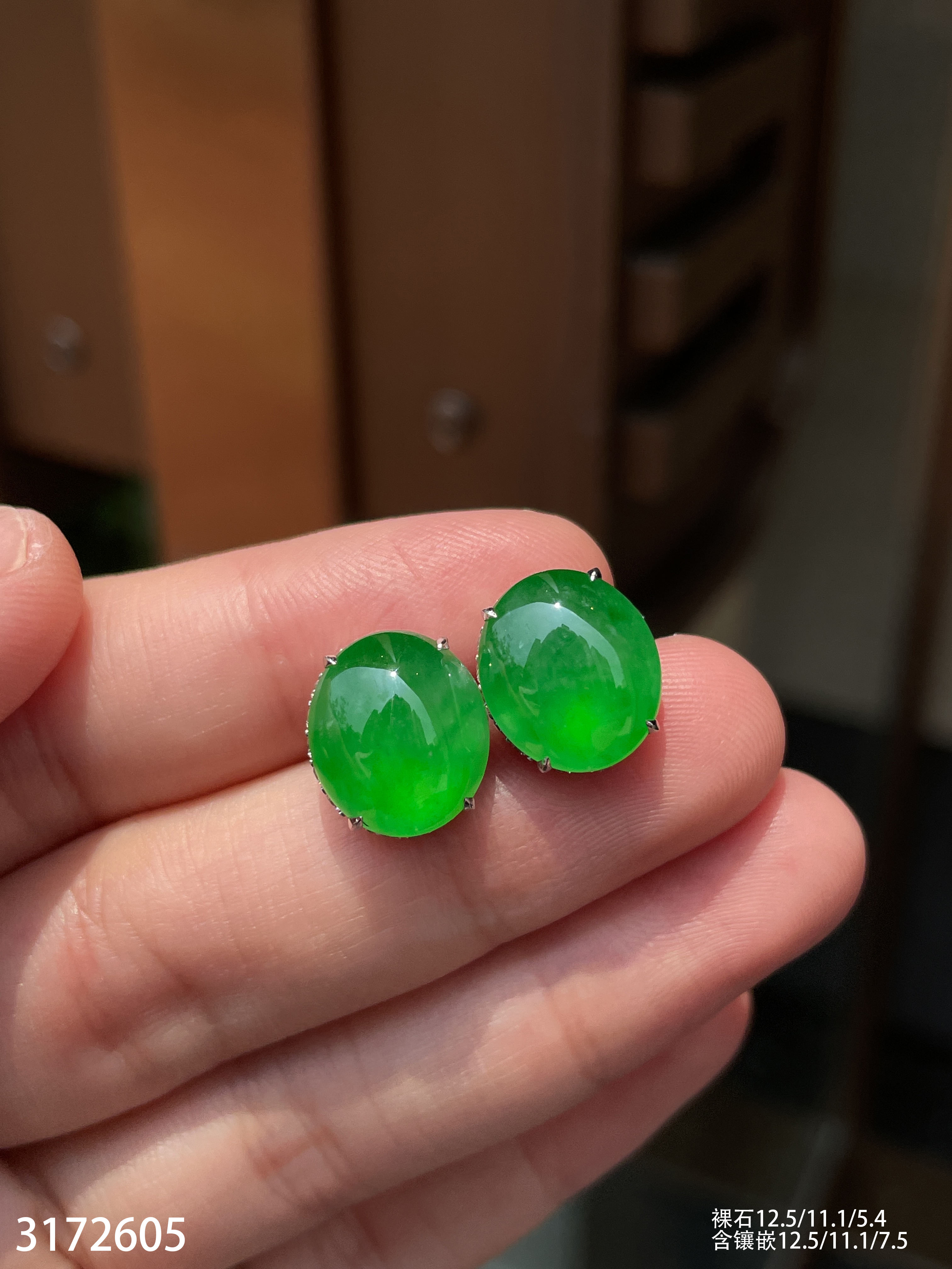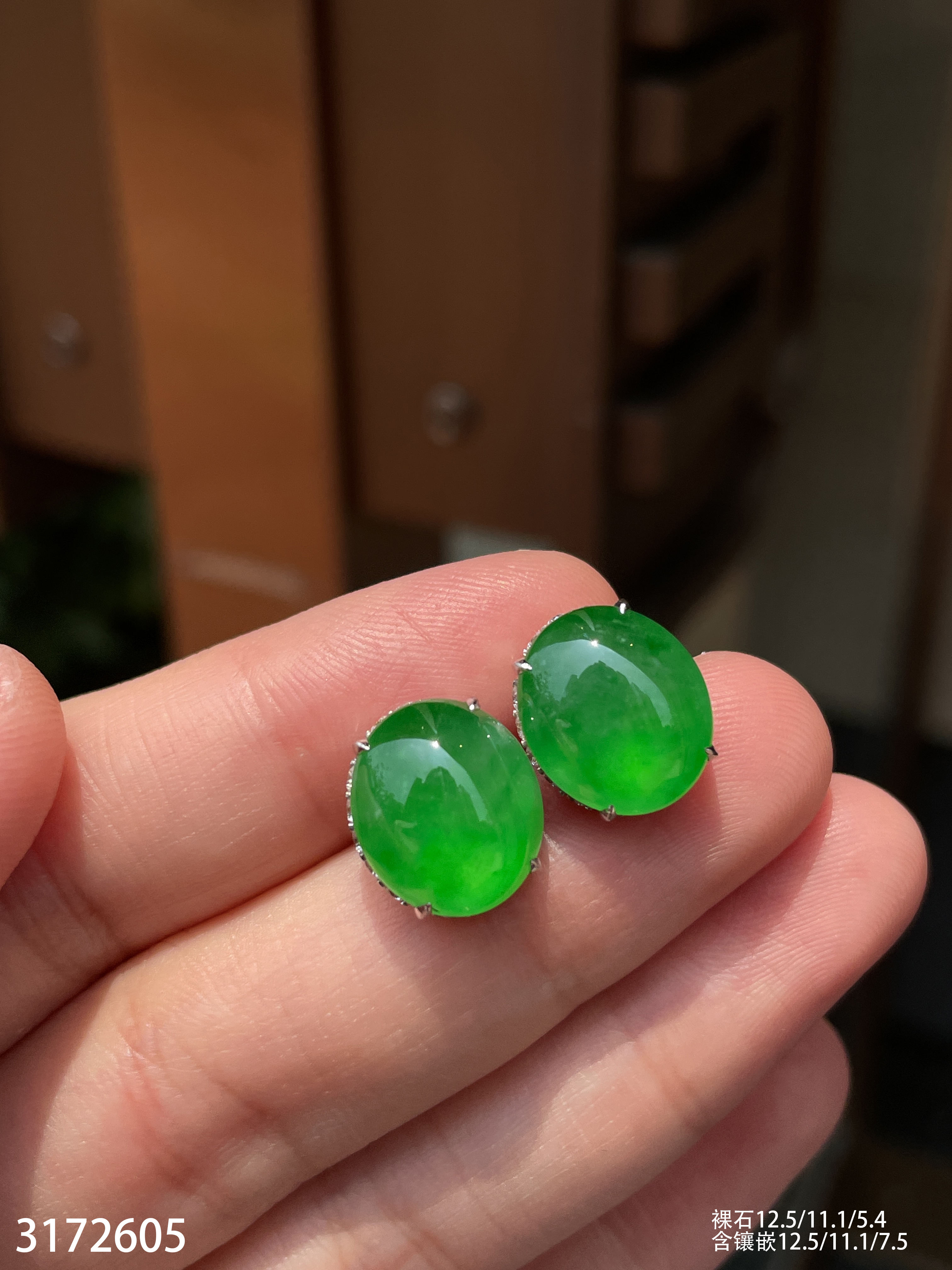 老坑高冰阳艳绿蛋面耳钉【3172605】具体价格微信咨询
