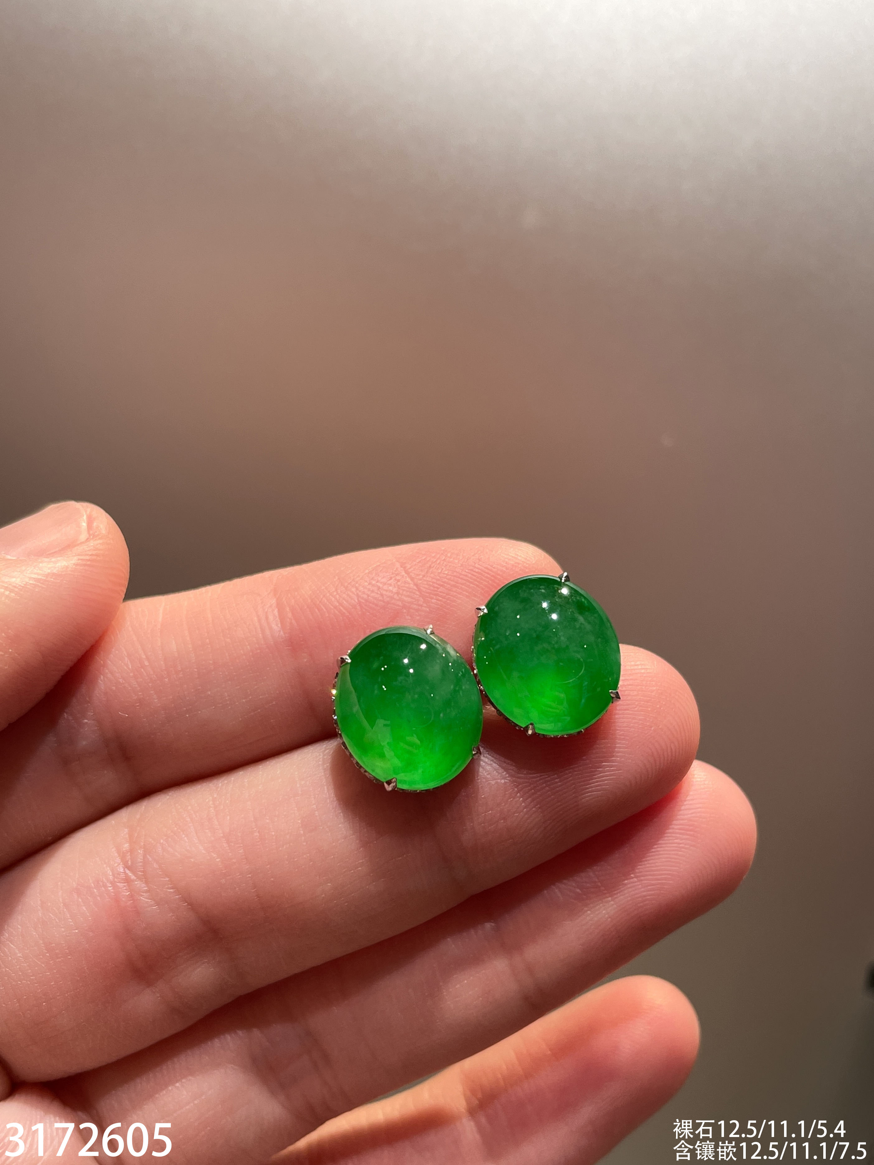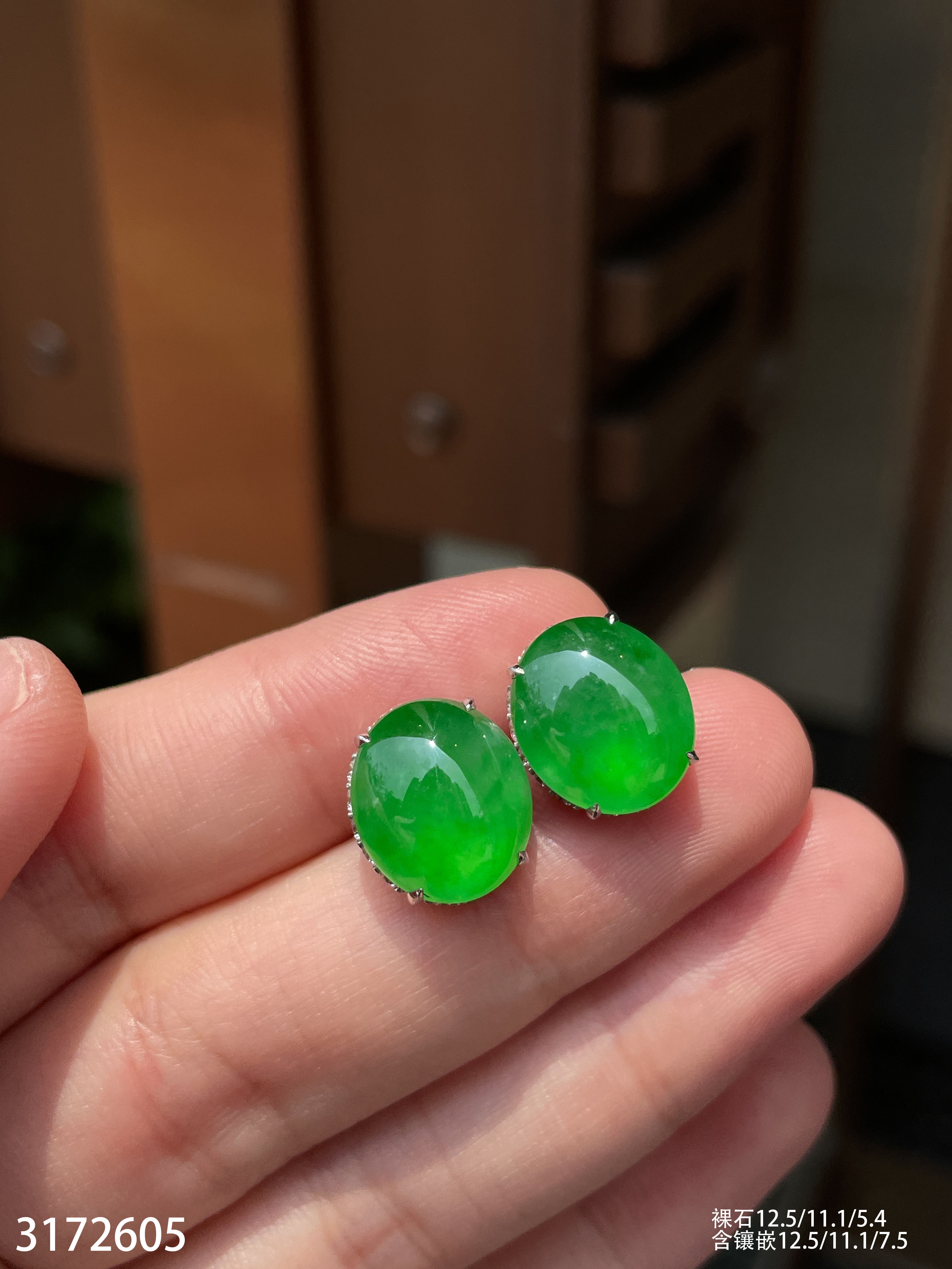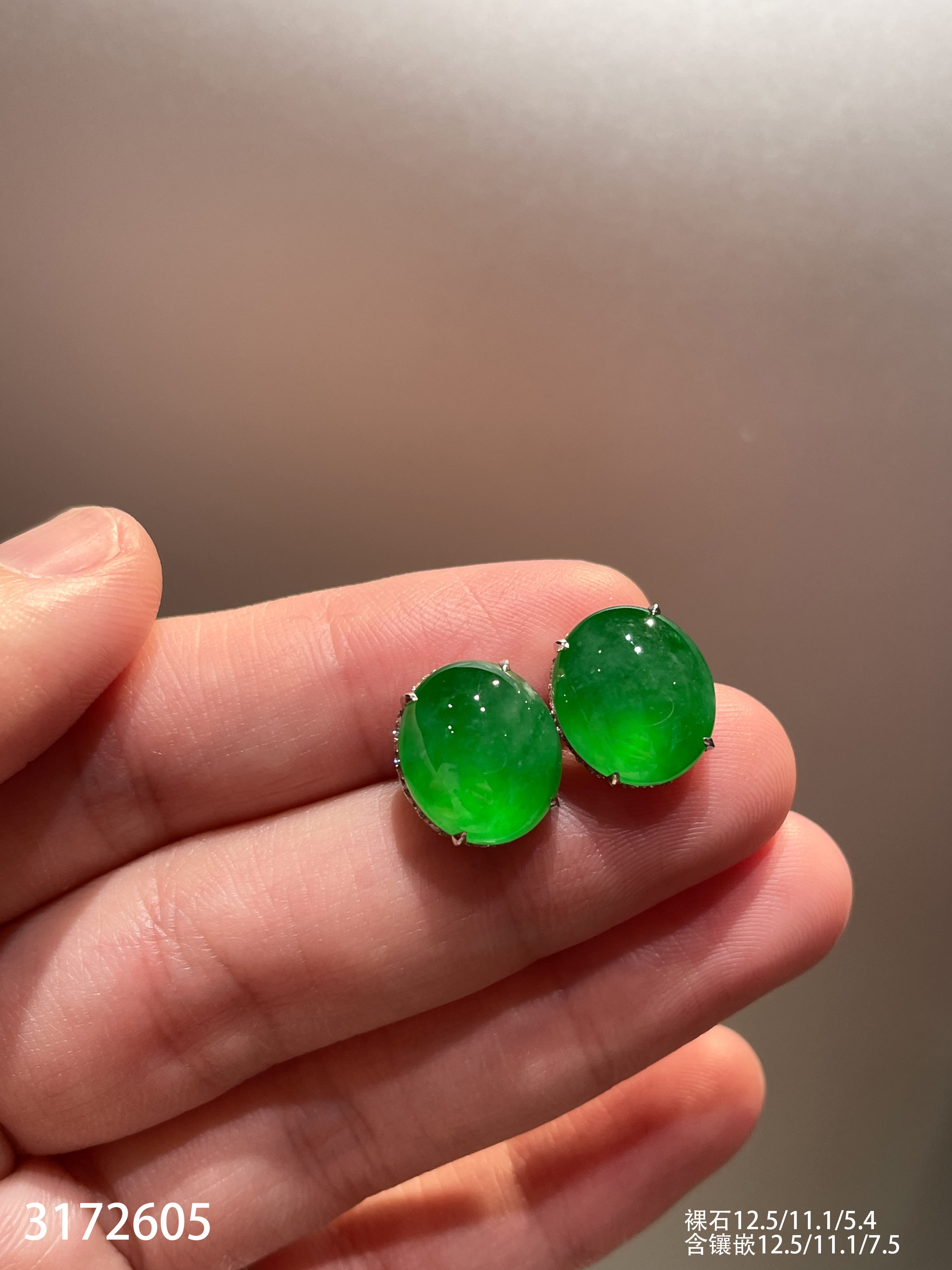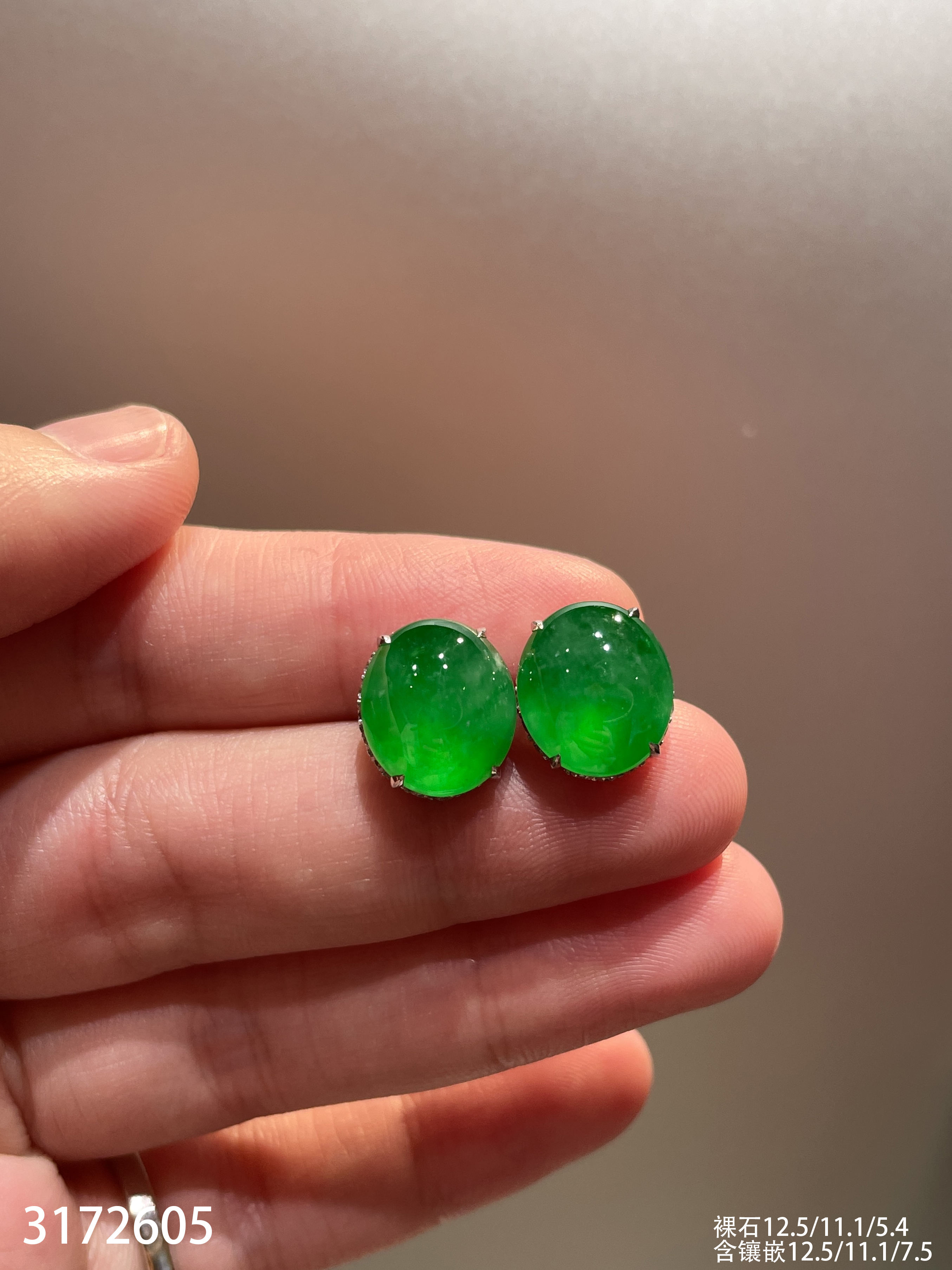 老坑高冰阳艳绿蛋面耳钉【3172605】具体价格微信咨询