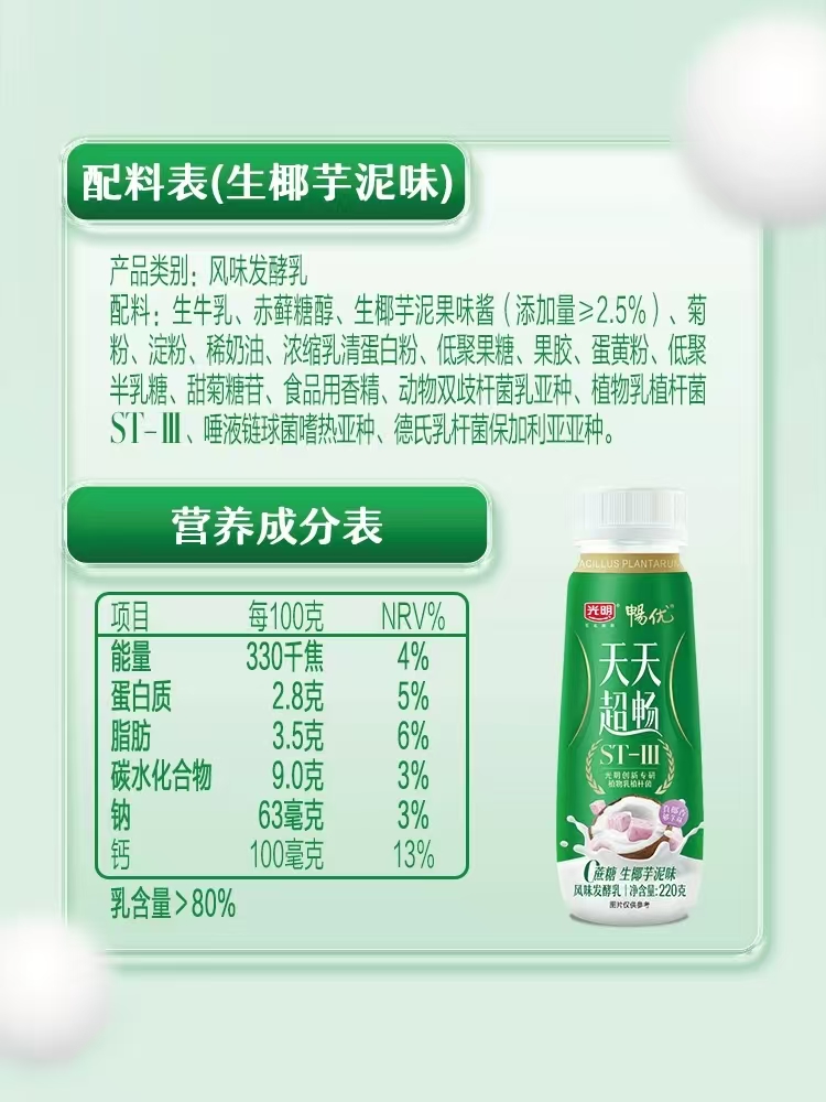 畅优超畅风味发酵乳(生椰芋泥味) 220g*10