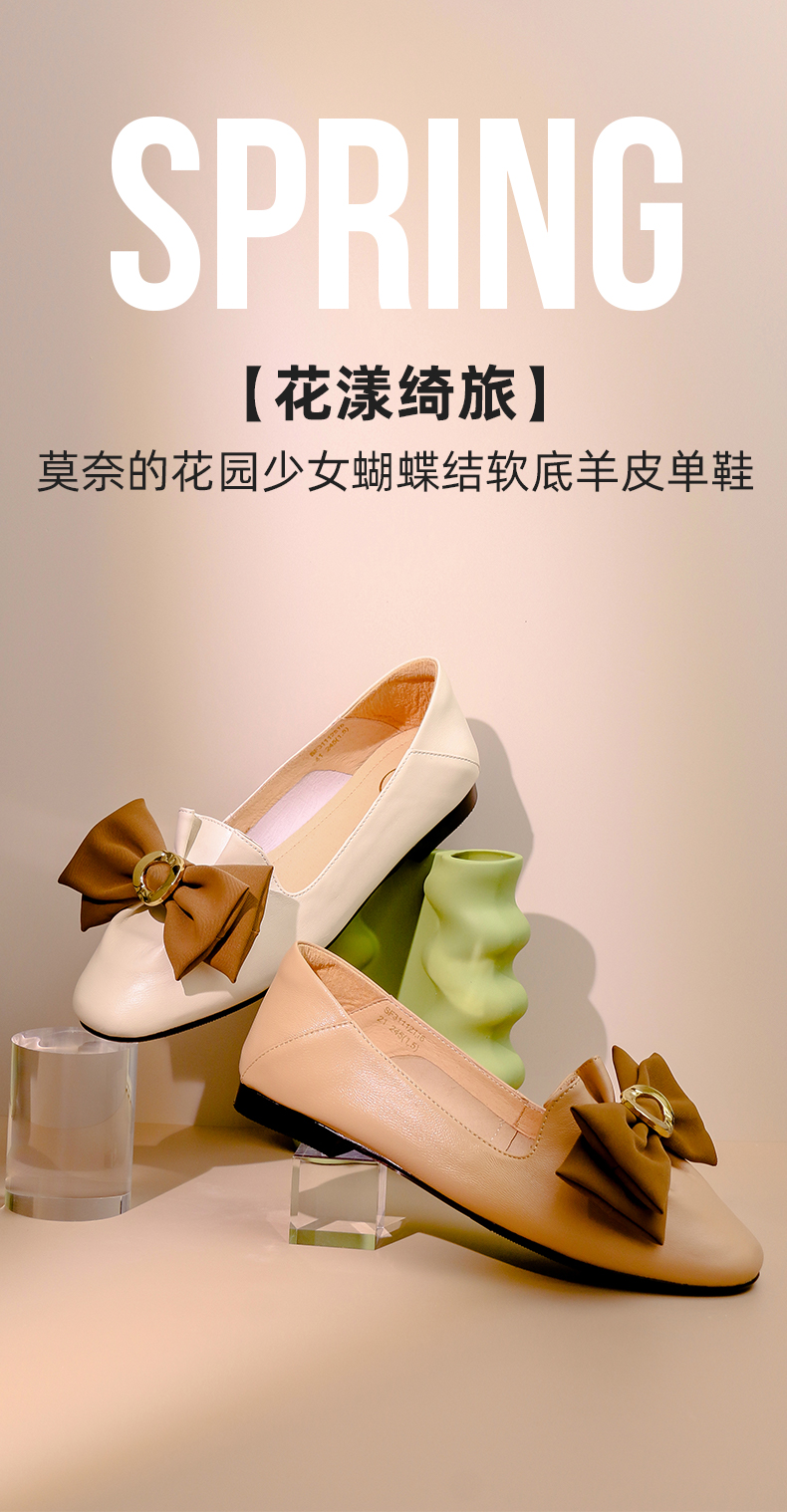 Safiya/索菲娅 莫奈的花园2023春季新款少女蝴蝶结软底羊皮单鞋 SF31112116