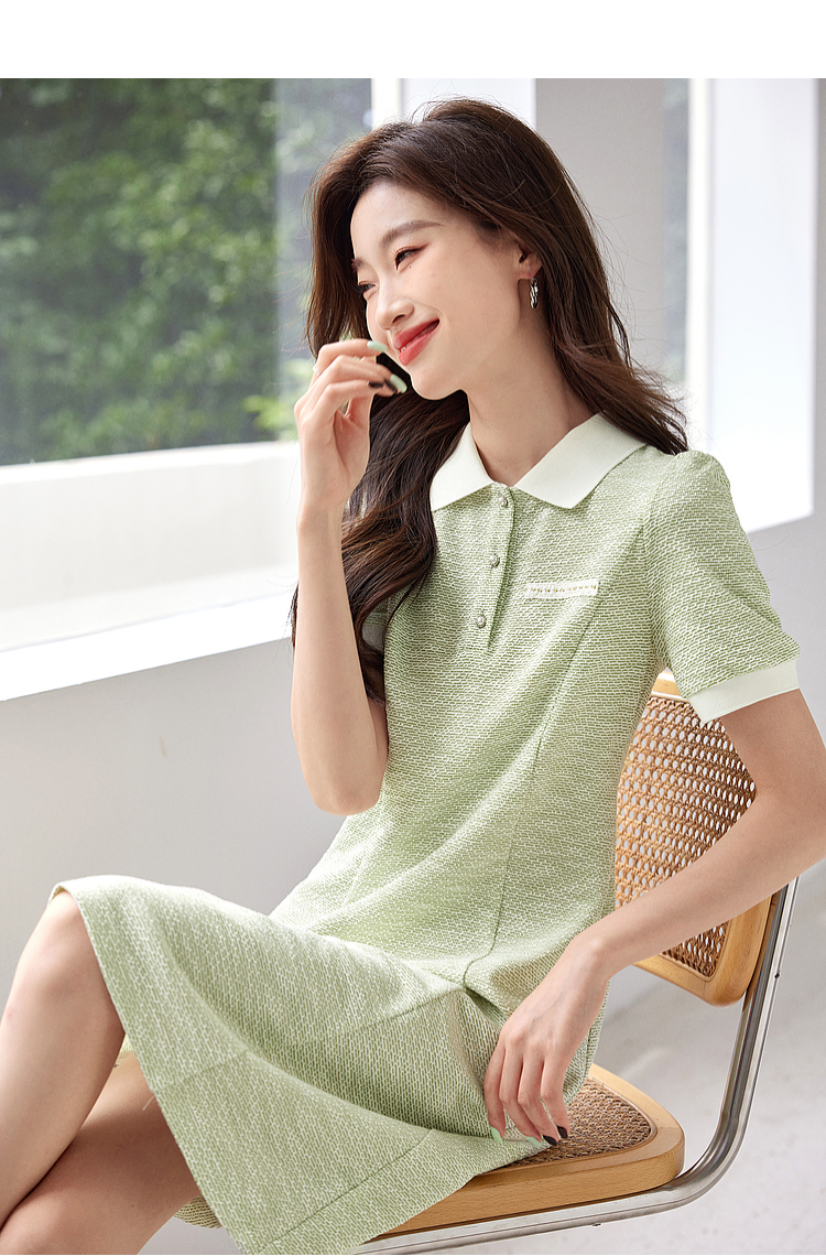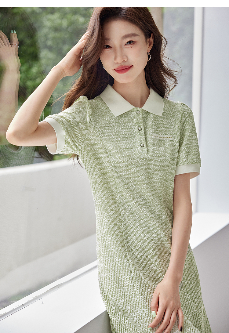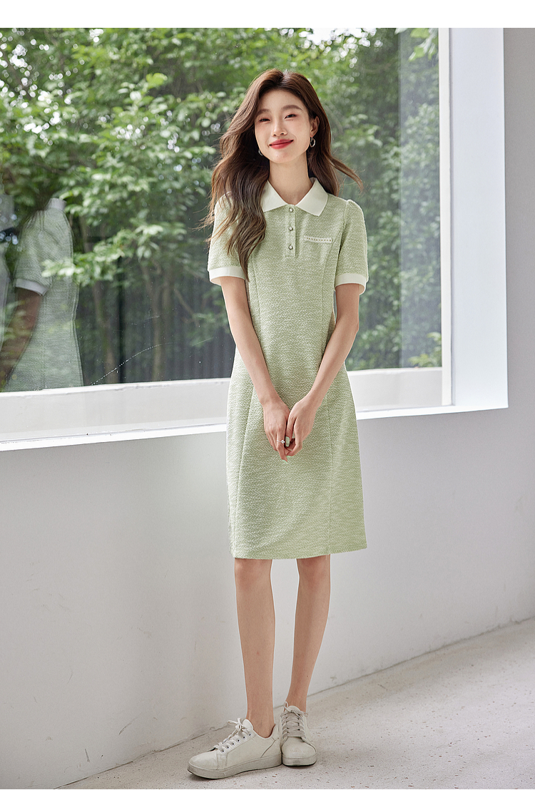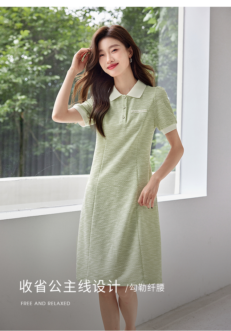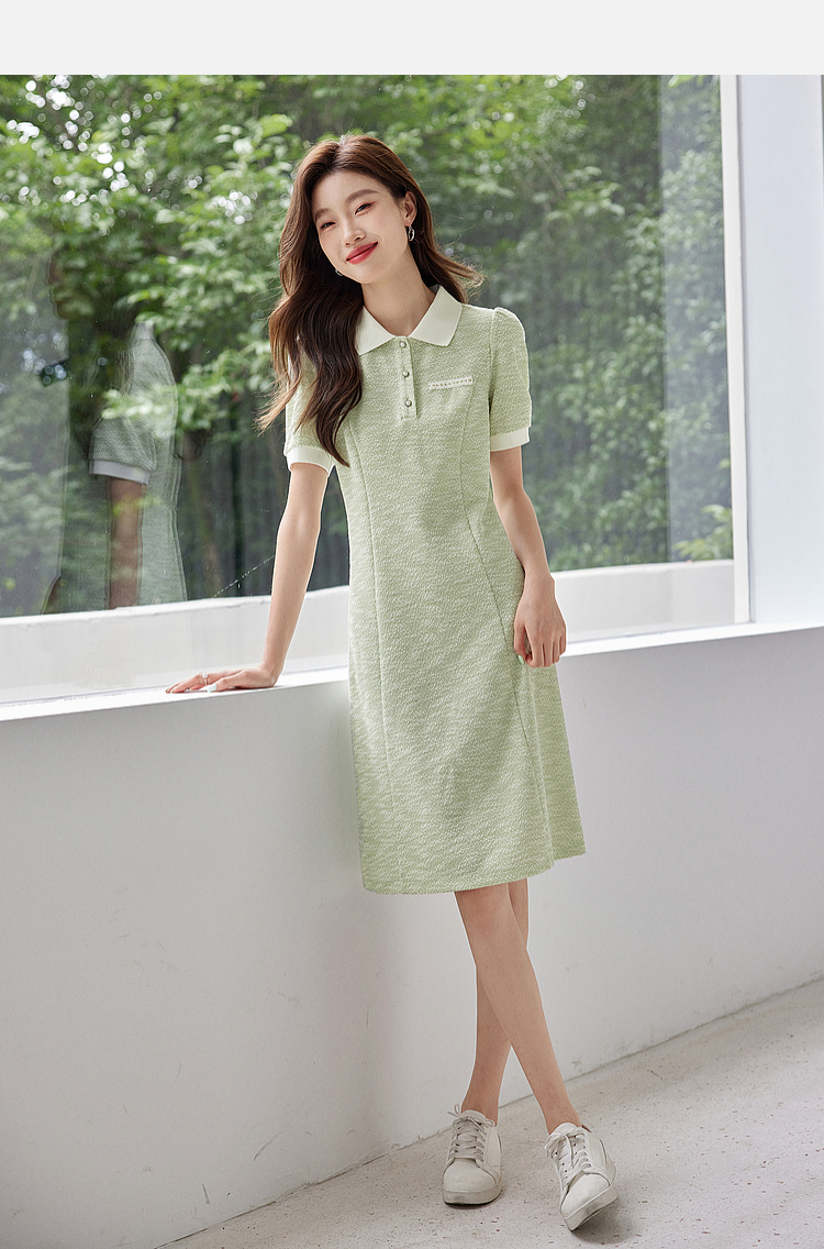 【专属特价】熙世界薄荷绿小香风Polo领连衣裙2025夏新款休闲甜美泡泡袖裙子