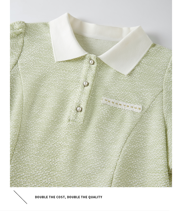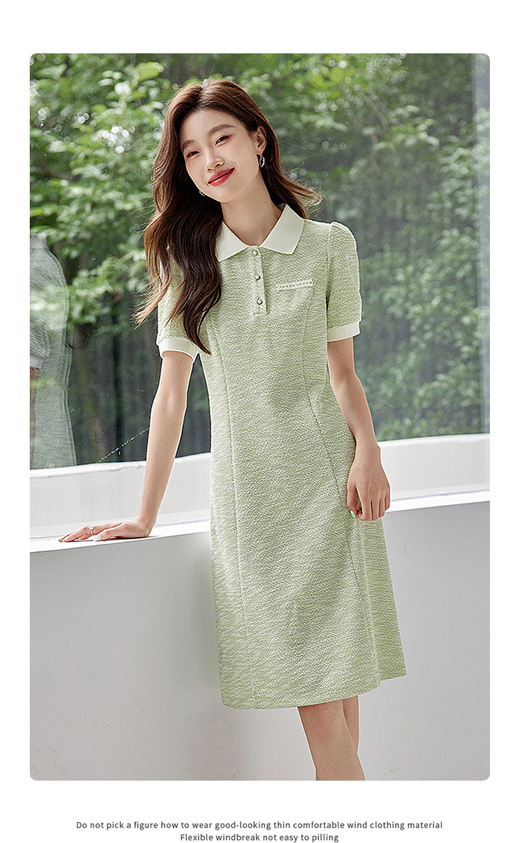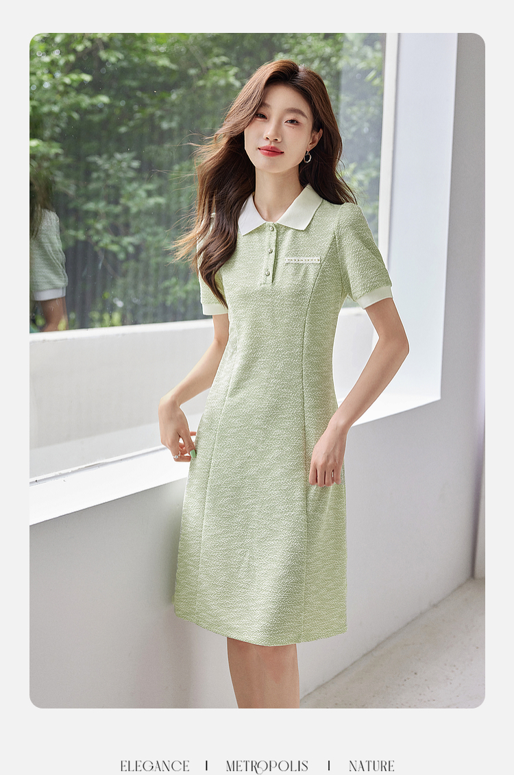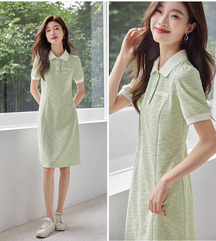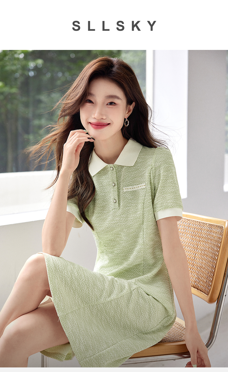 【专属特价】熙世界薄荷绿小香风Polo领连衣裙2025夏新款休闲甜美泡泡袖裙子