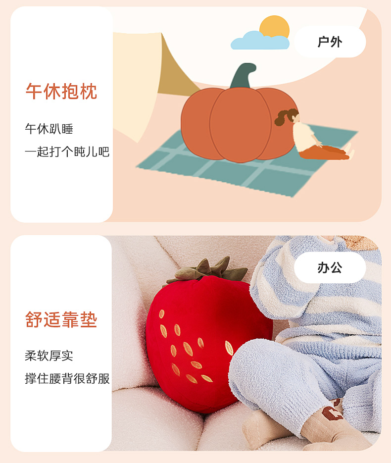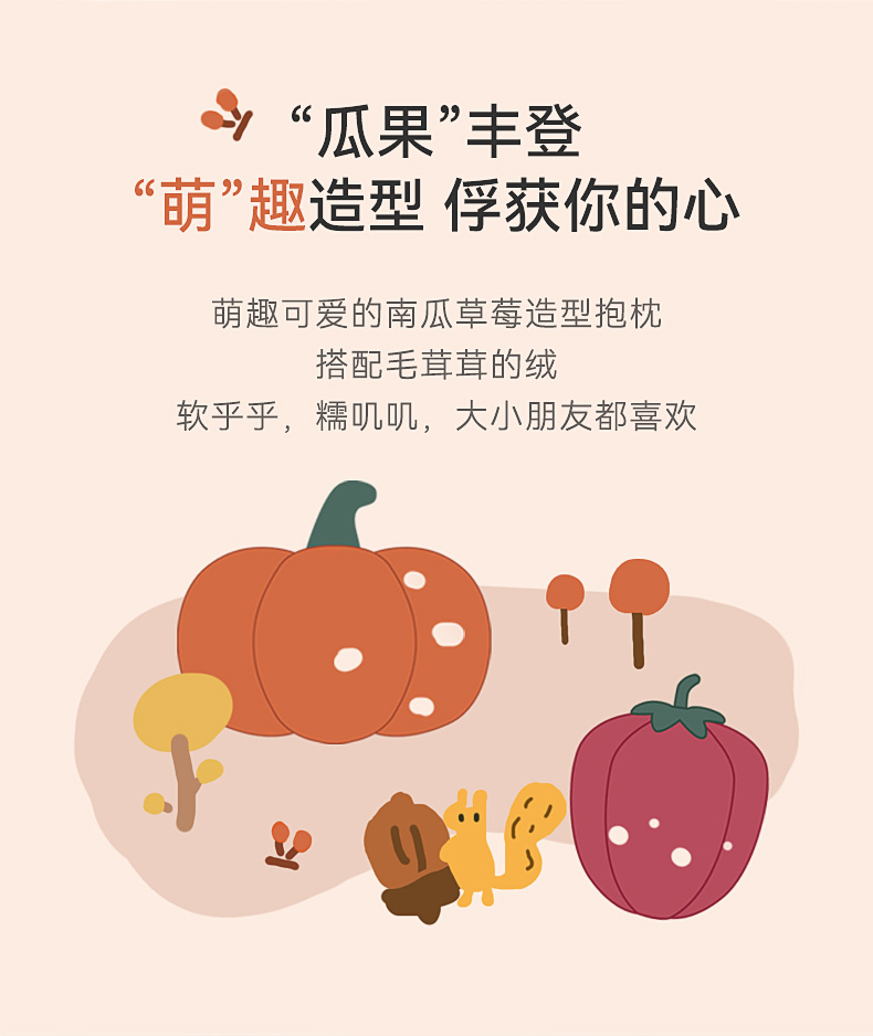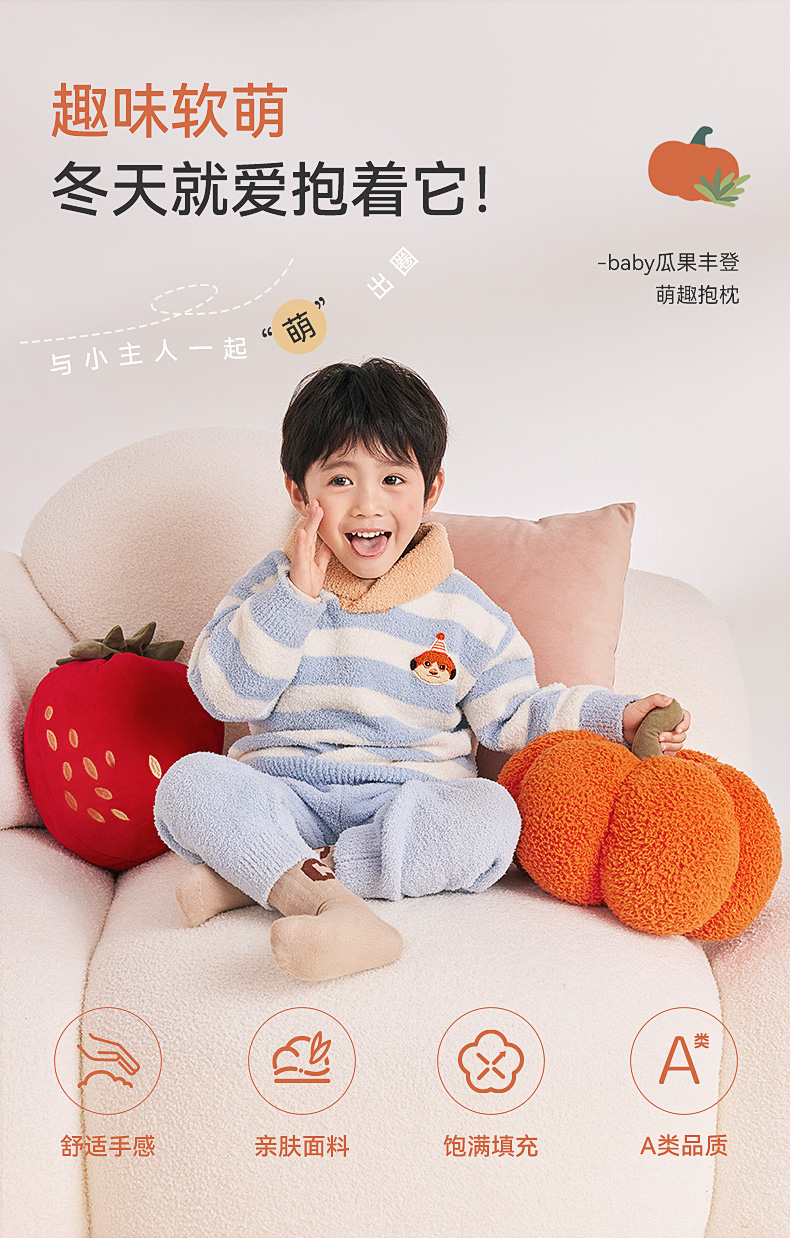 【39元秒杀】【i-baby/英伦宝贝萌趣毛绒安抚抱枕】儿童抱枕瓜果丰登萌趣玩偶抱枕四季通用
