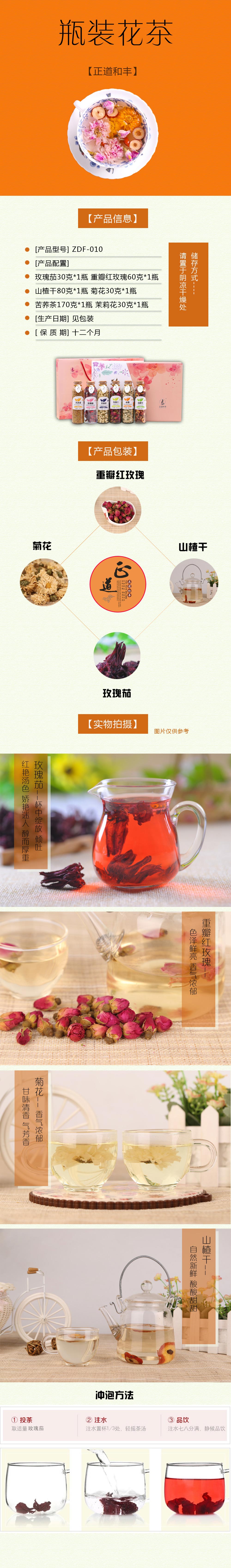 繁花盛景【山楂干80g、玫瑰茄30g、重瓣红玫瑰60g、茉莉花30g、苦荞茶170g、贡菊30g】ZDF-010