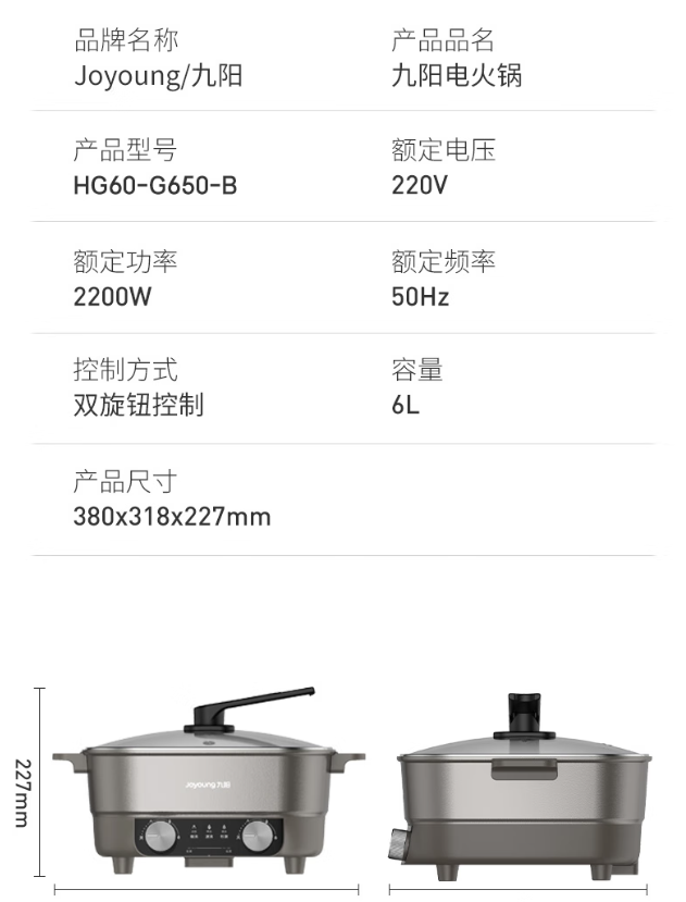 九阳电火锅(鸳鸯锅)HG60-G650-B 6L