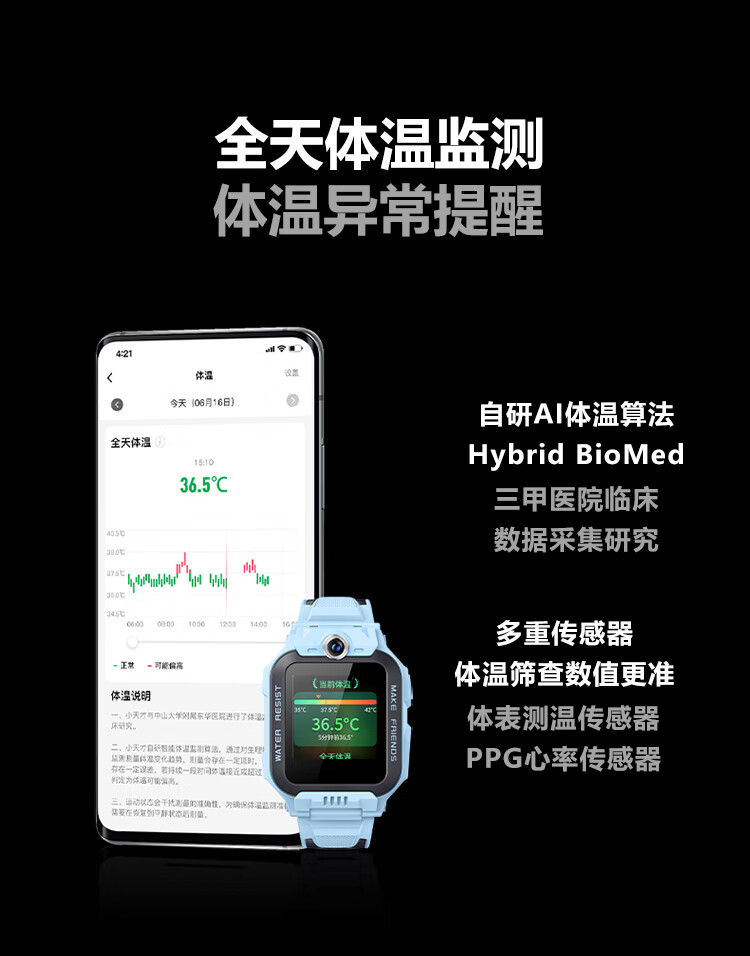 小天才电话手表Z6pro天境蓝防水GPS定位智能手表 学生儿童4G视频拍照双摄男女表