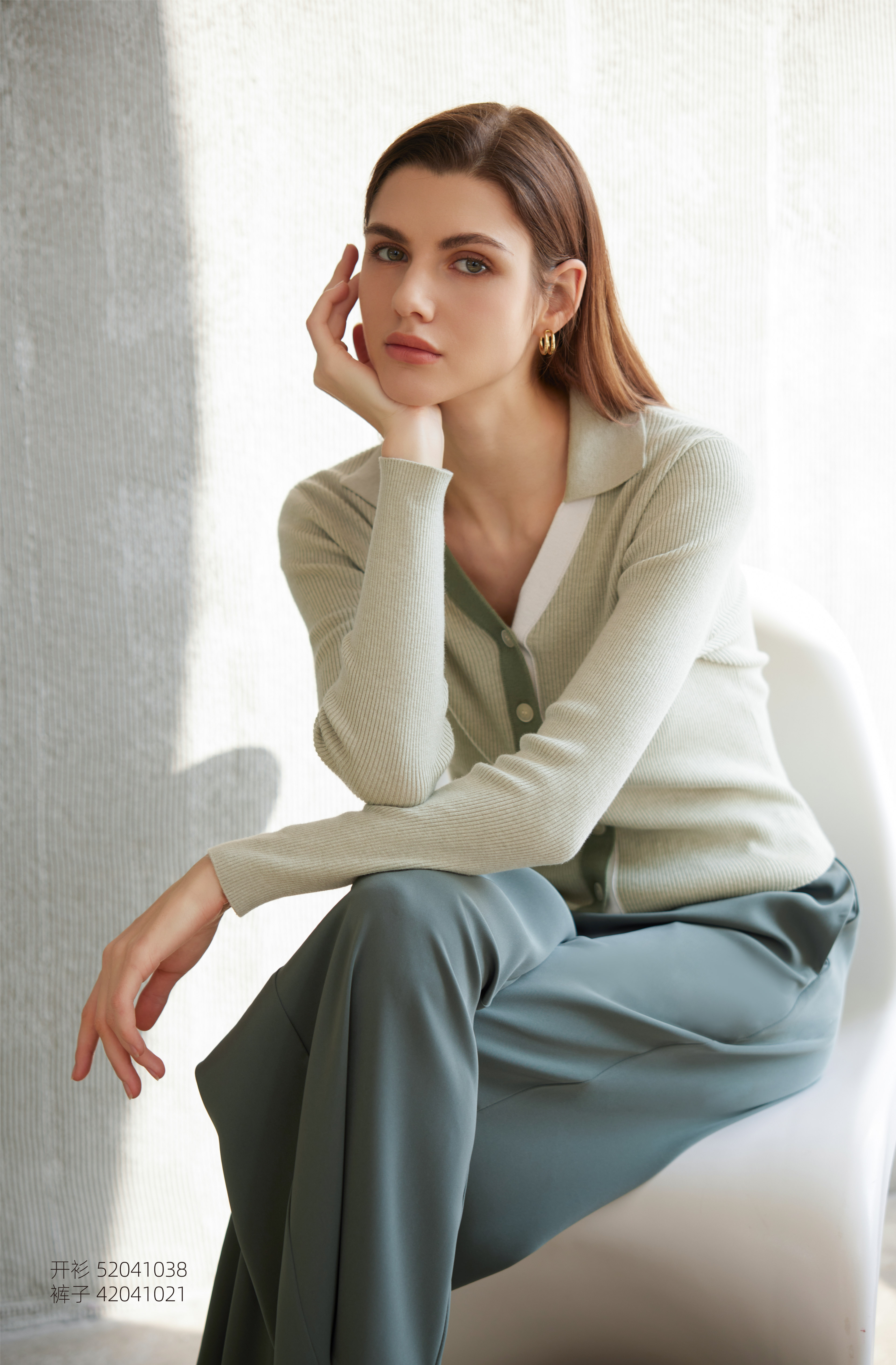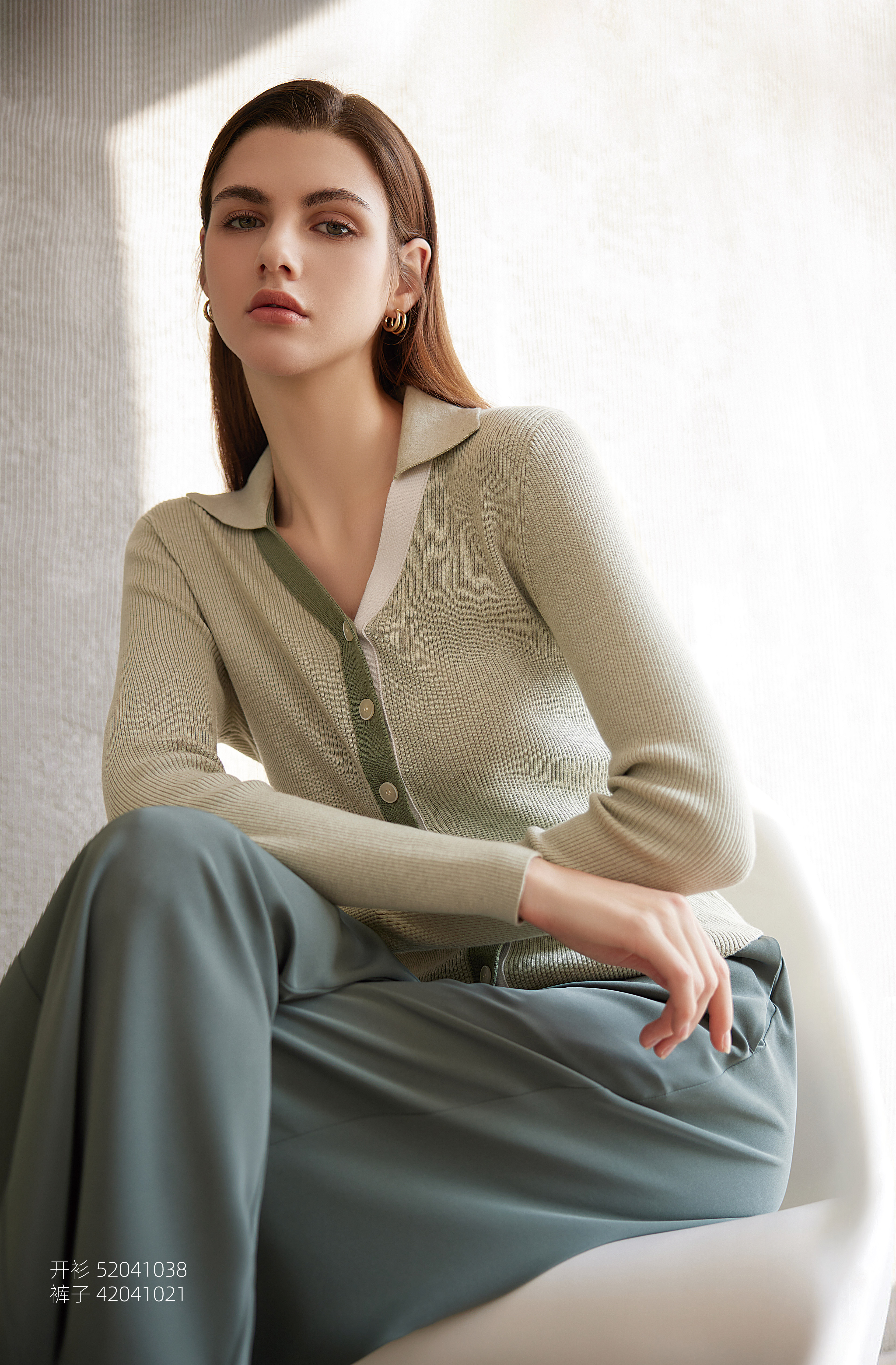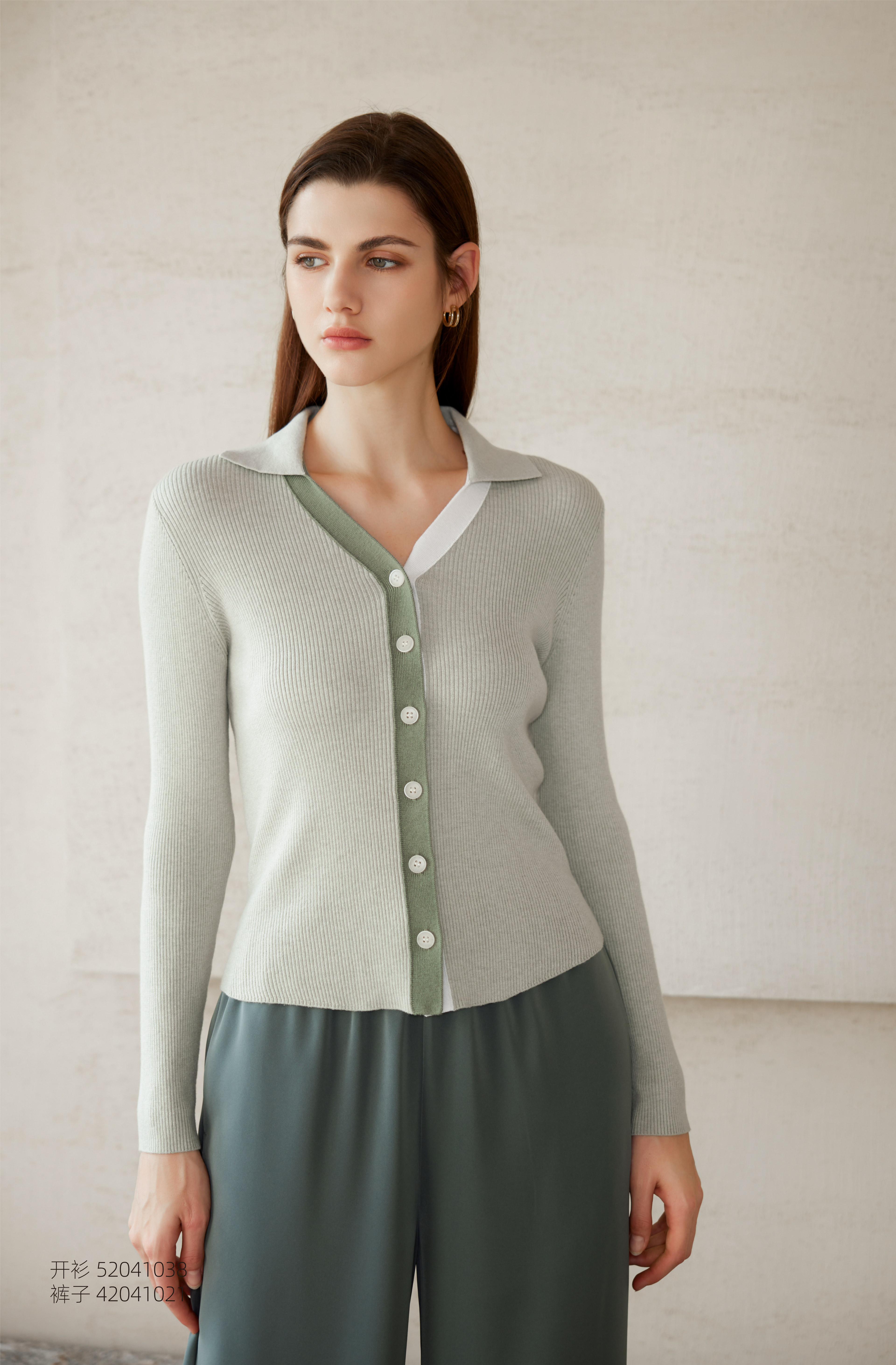 【棉质坑条纹撞色开衫】24年春夏新款女士V领修身显瘦针织小外套