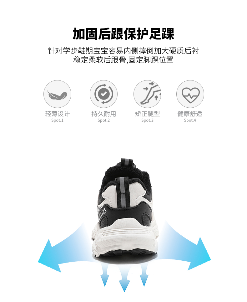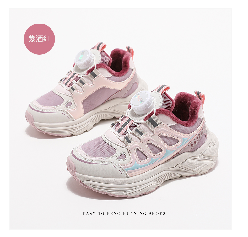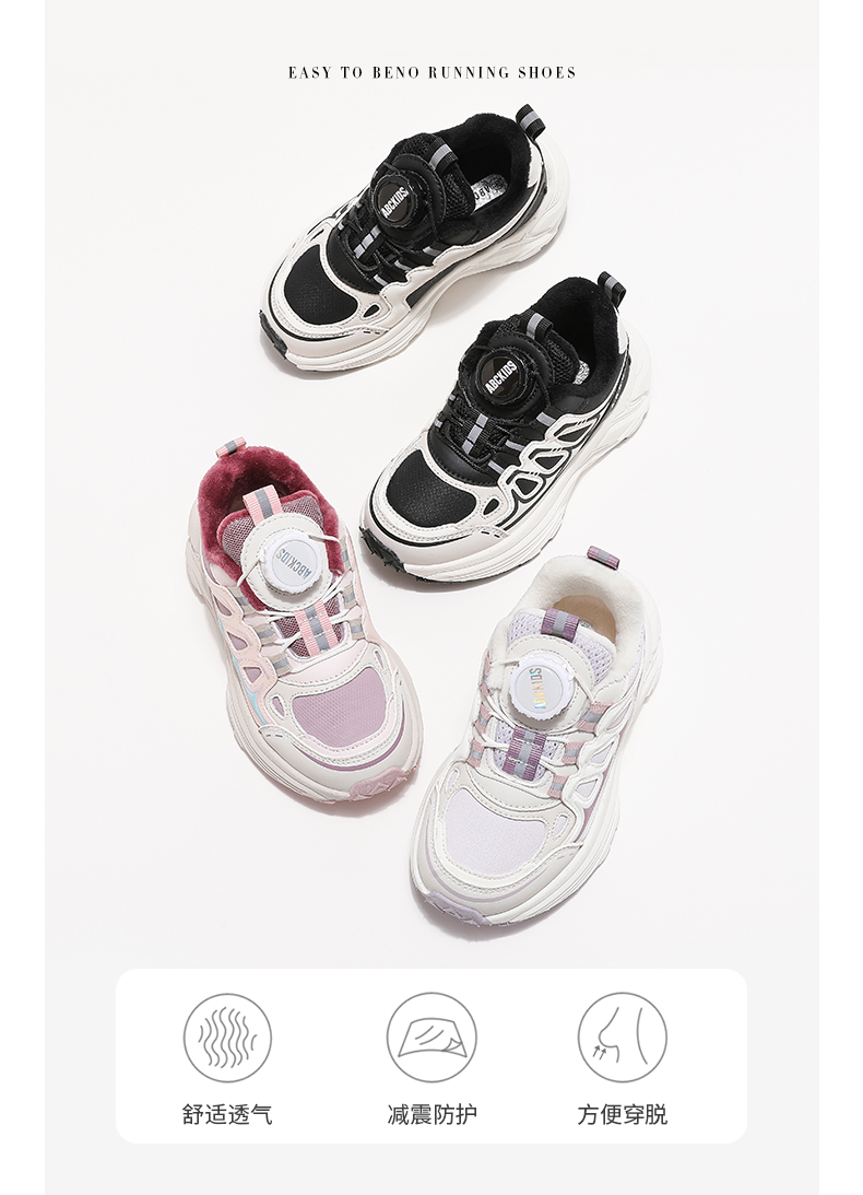ABCkids童鞋女童加绒运动鞋儿童二棉鞋冬季软底童鞋女孩保暖棉鞋