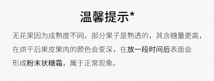 3、果干表面可能会因为糖分析出而形成白霜,和柿子霜一样,是正常现象。
