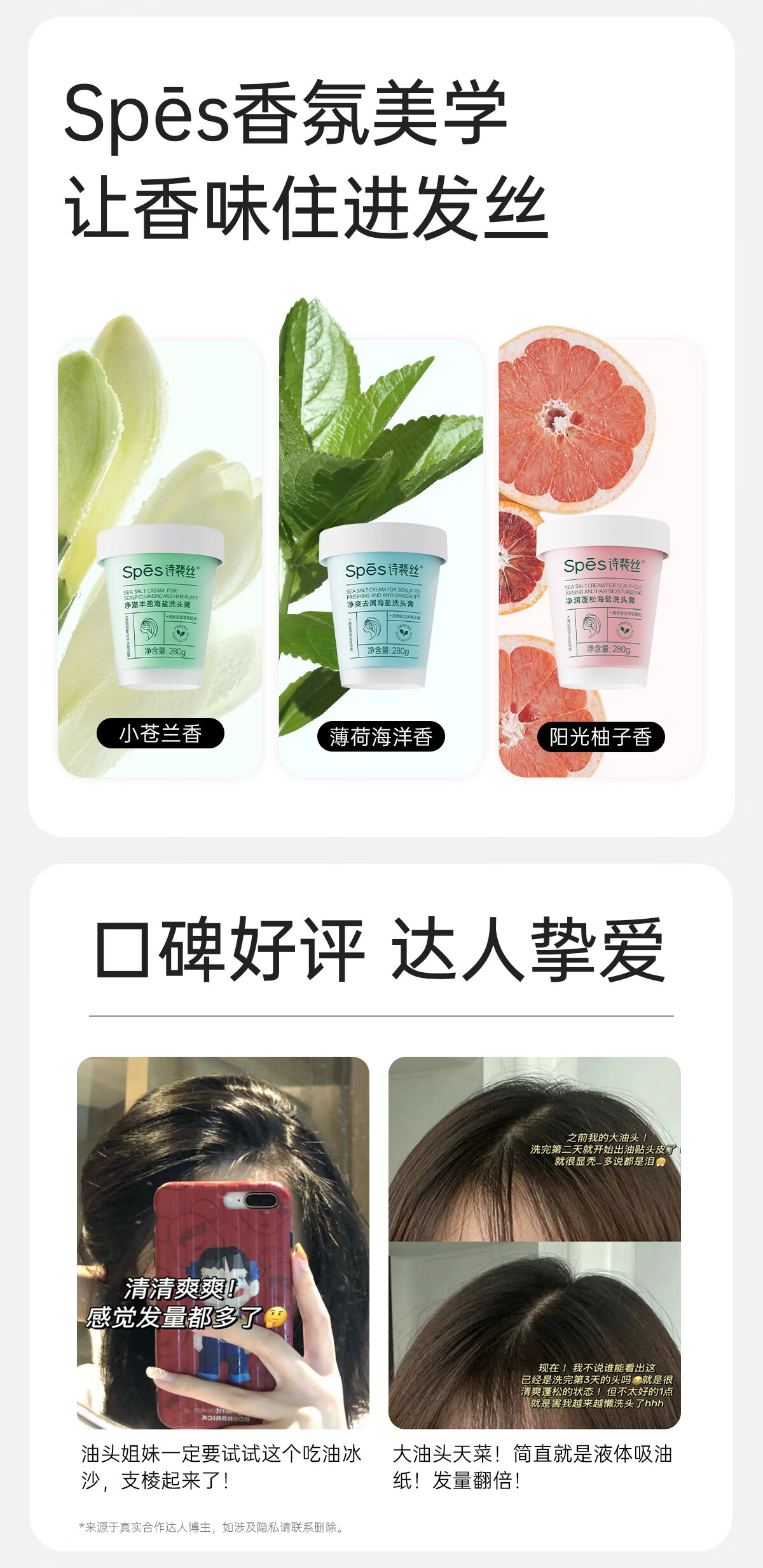 Spes诗裴丝 净澈丰盈海盐洗头膏 280g 控油蓬松清洁 控油型绿色款