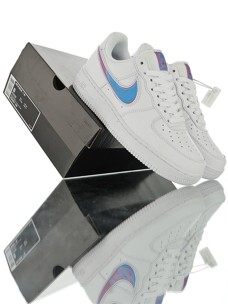 耐克Nike Air Force 1 07 LV8 空军一号经典百搭休闲运动板鞋 白皮极光蓝紫渐变放大钩黑皮灰银渐变放大钩配色