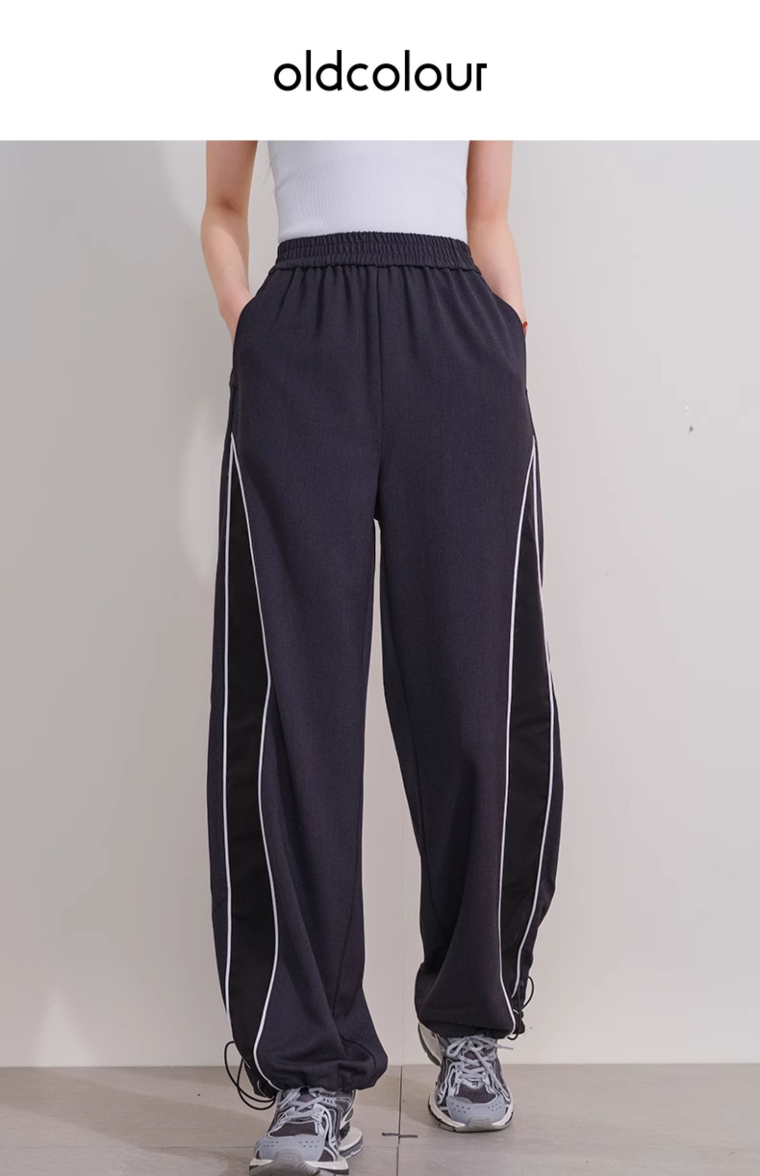 oldcolour冬季新款撞色运动宽松美式工装显瘦休闲长裤女P440710A1
