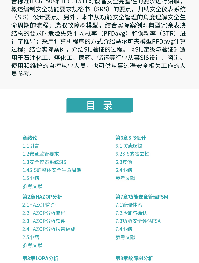 第6章讨论了SIS的逻辑绘制、设备选型等常见应用问题;