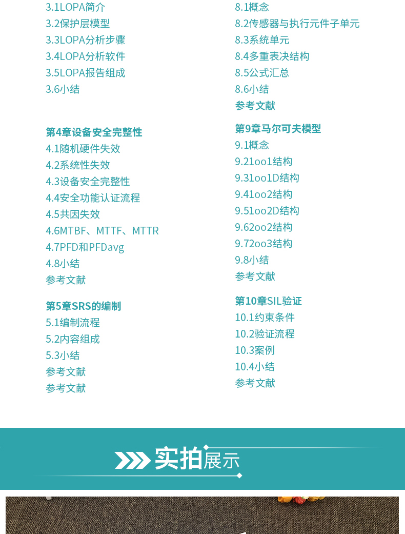 第4章围绕着设备的安全完整性,介绍功能安全认证、失效数据、共因失效因子等,这部分内容是要求时危险失效平均概率PFDavg和误动率STR计算的基础;