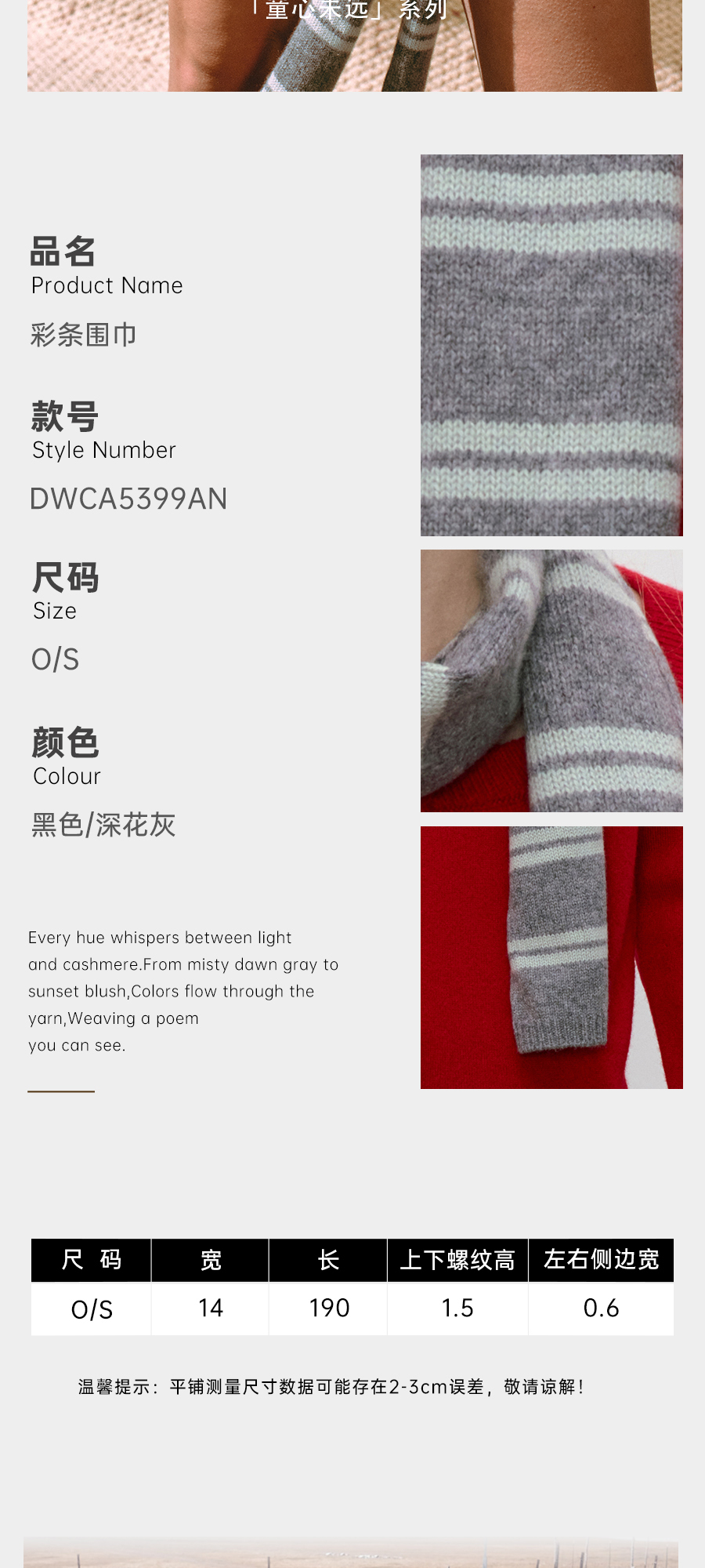 东黎 • 童心未远 琴键 山羊绒冬季彩条围巾 5399