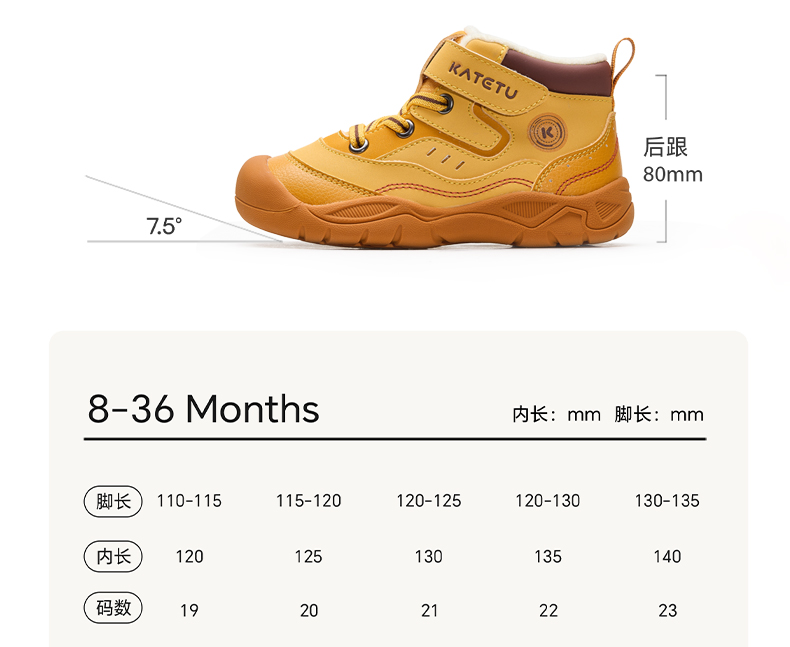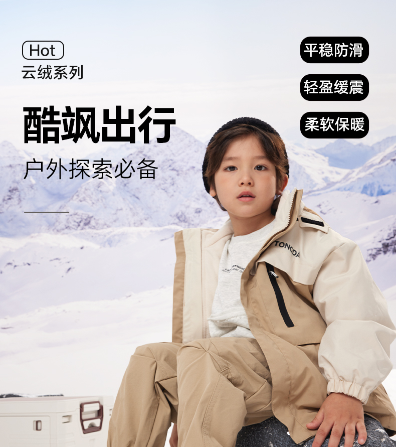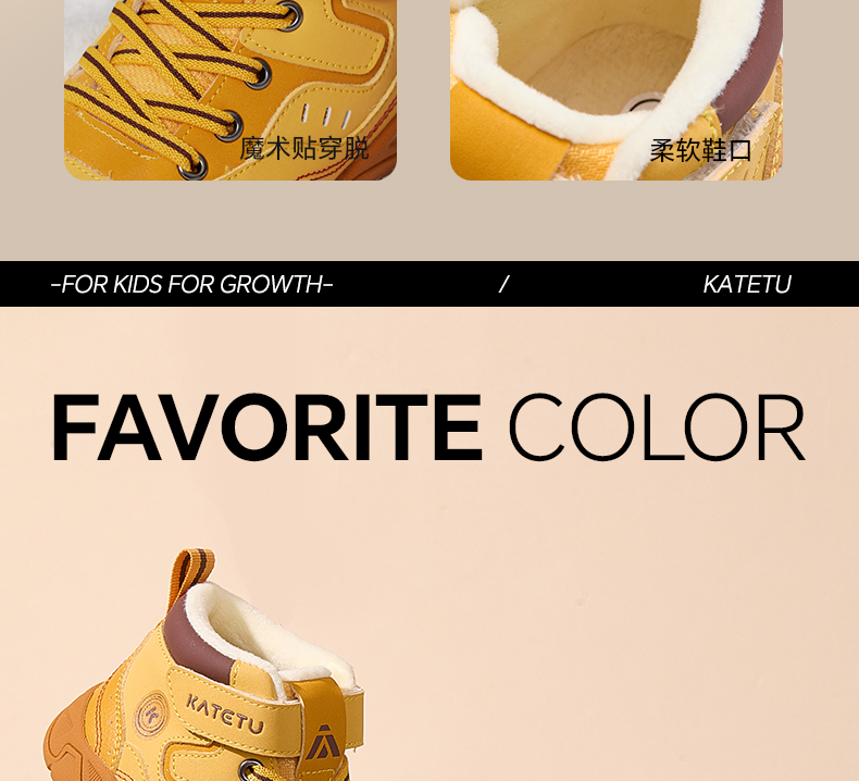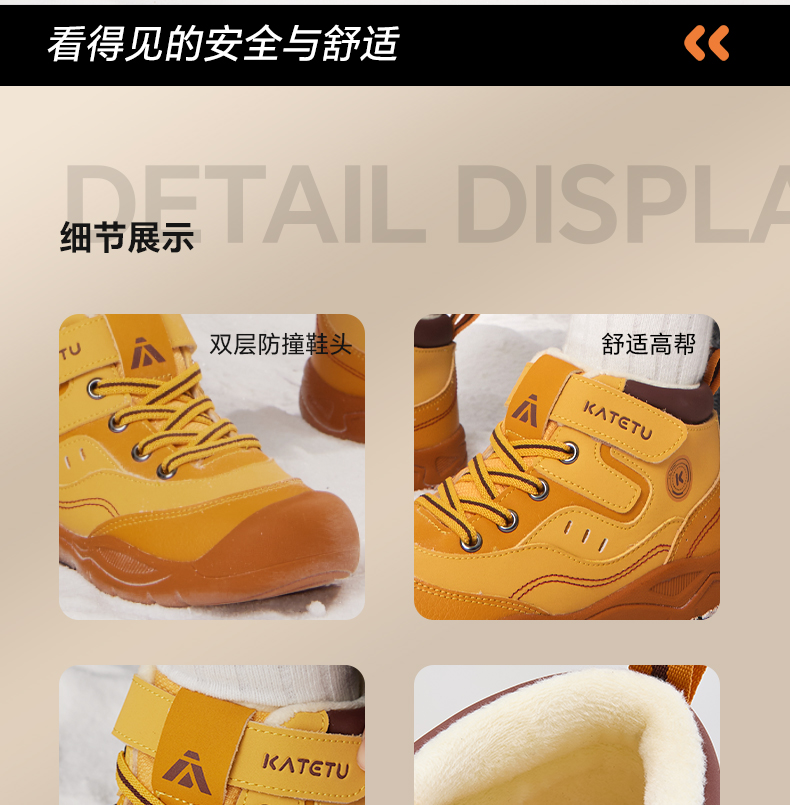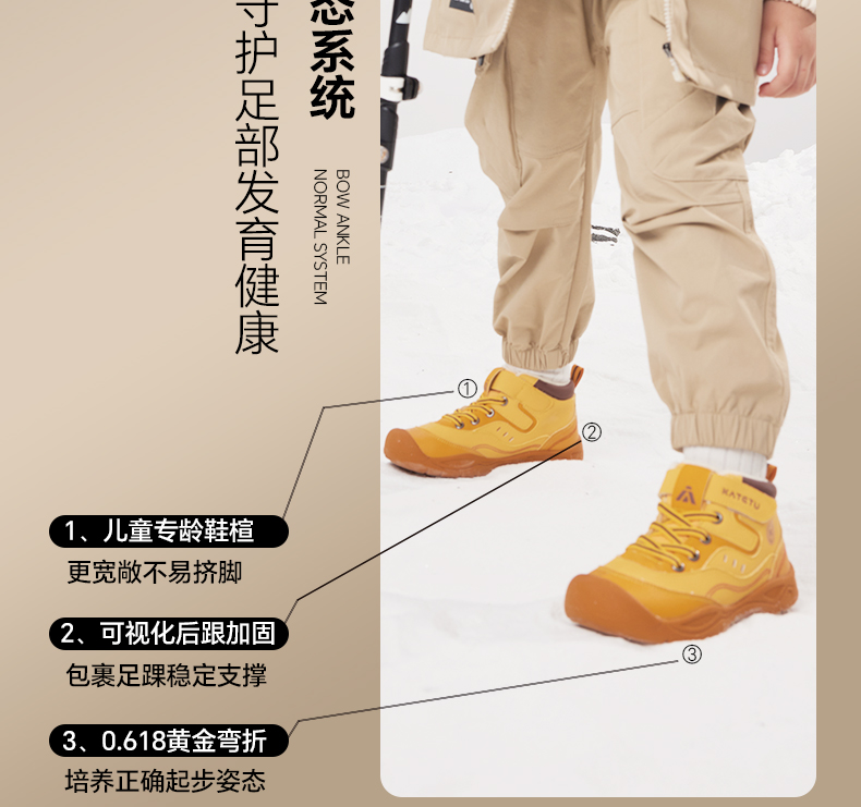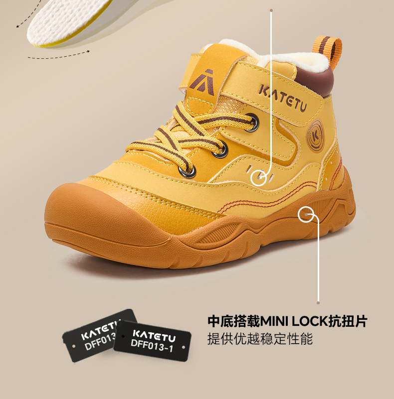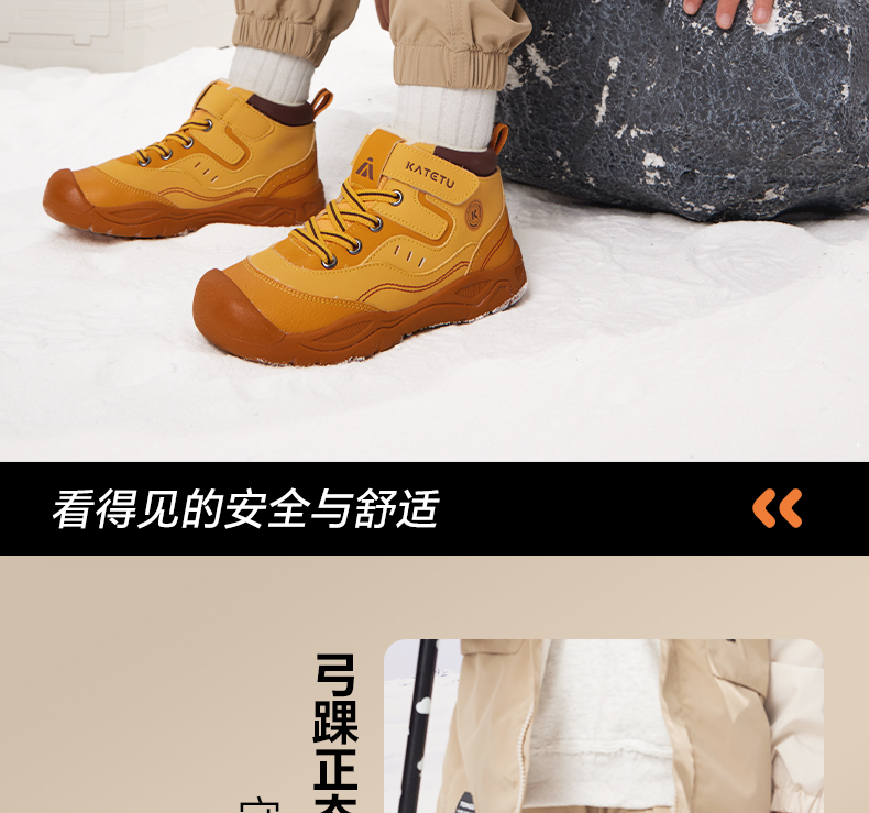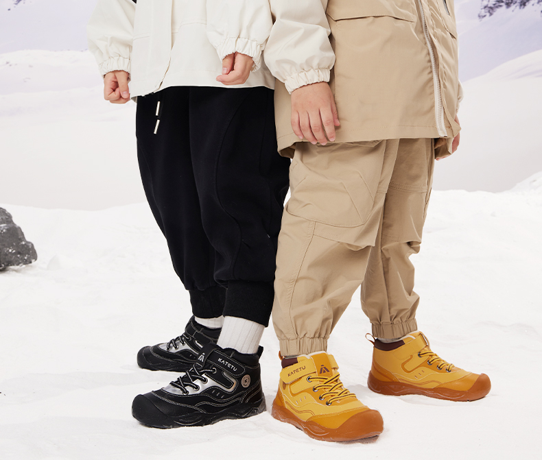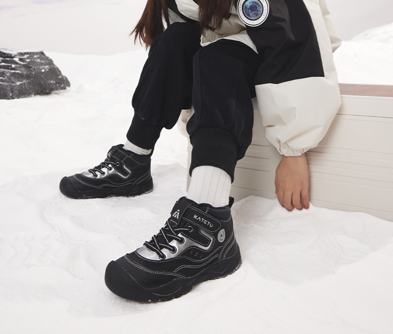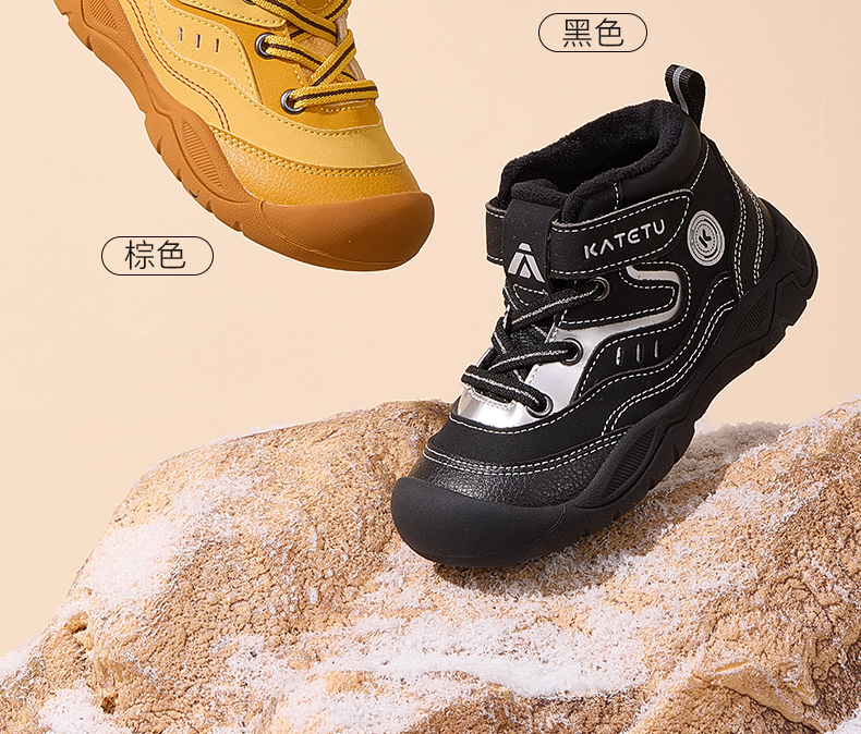 卡特兔童鞋户外高帮儿童运动鞋2024冬季新款加绒靴子防滑儿童棉鞋