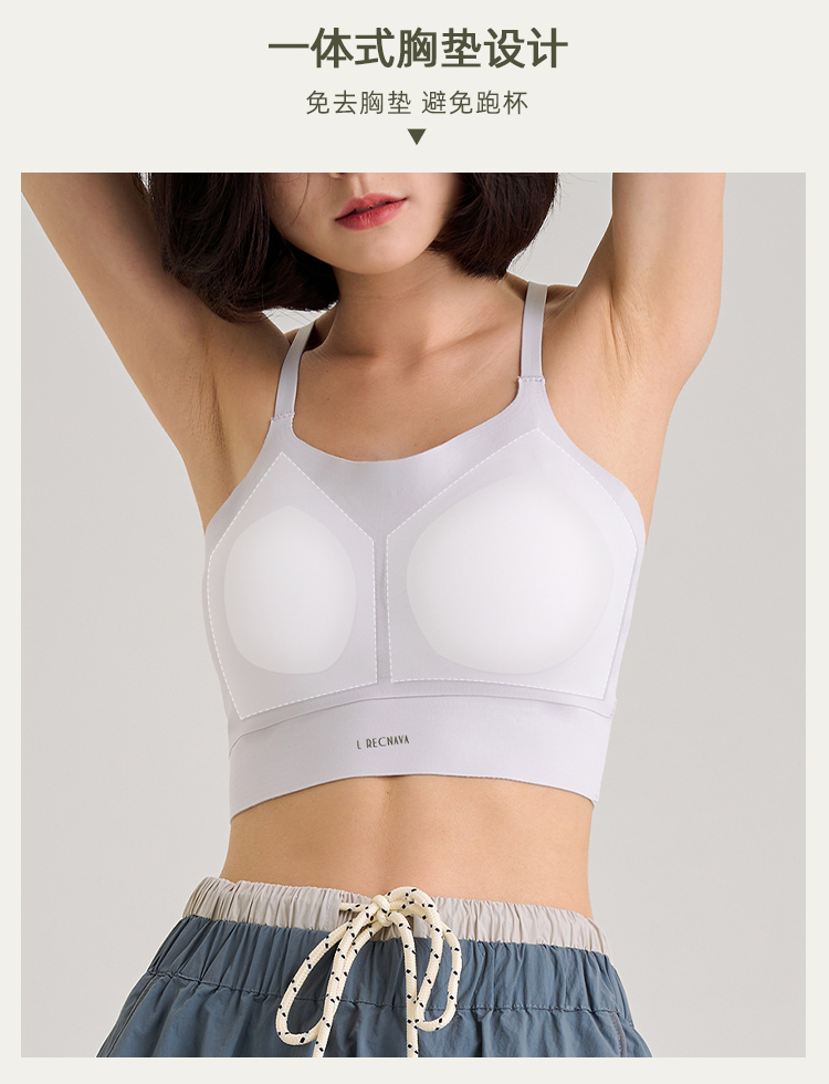 【裸感面料】一体式胸垫运动背心 后背可调节交叉绑带 一片式激光切割 无痕胸衣 中高强包裹好 无束缚