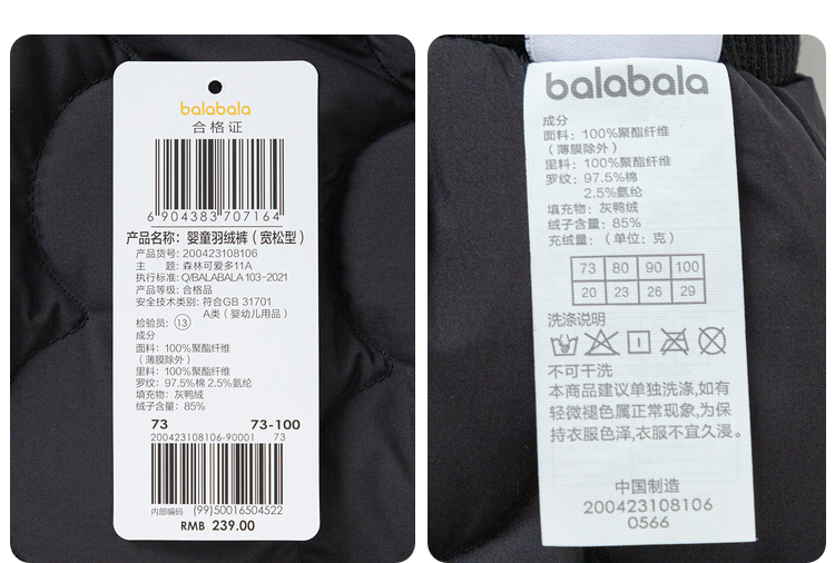 巴拉巴拉童装儿童羽绒裤男童外穿长裤冬季裤子保暖裤造型可爱萌趣★