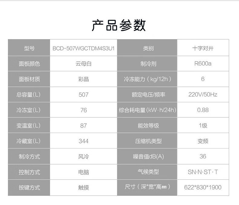 卡萨帝十字门冰箱BCD-507WGCTDM4S3U1