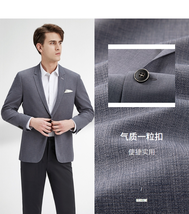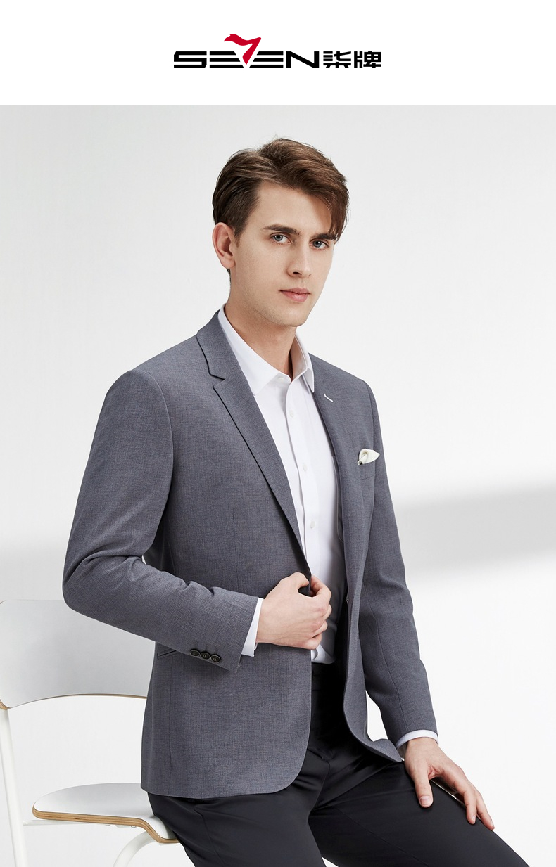 【特价】柒牌休闲西装男外套春秋款中青年绅士西服男装一粒扣花纱单西 122C70210
